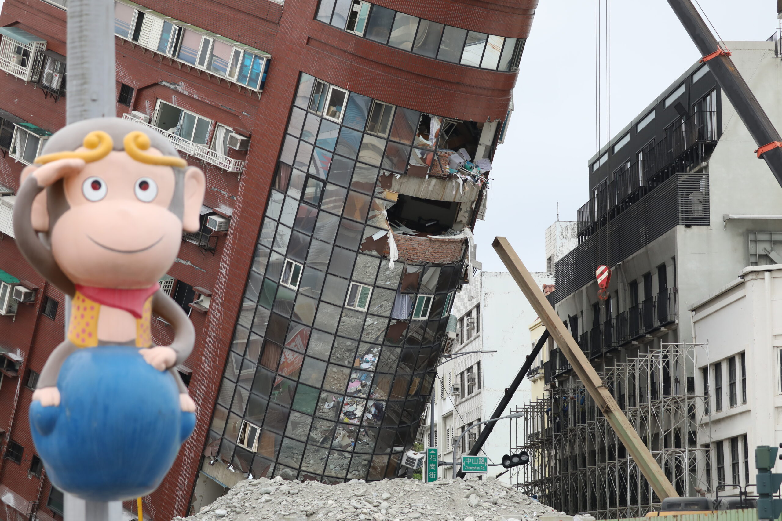 4月5日,因地震严重倾斜的花莲天王星大楼开始拆除。为保证拆除作业安全进行,工作人员首先在大楼倾斜面搭建钢梁,以稳定倾斜建筑。 未经允许不得转载:城市新闻网icitynews » 因地震严重倾斜的花莲天王星大楼开始拆除