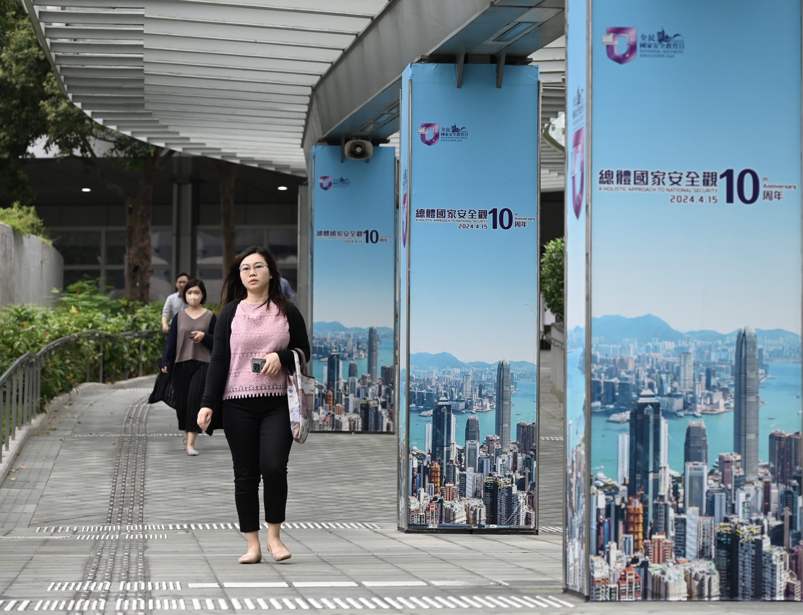 今年是总体国家安全观提出10周年,4月15日将迎来第9个“全民国家安全教育日”。4月9日,位于香港特区政府总部外,张贴有“全民国家安全教育日”宣传品。
