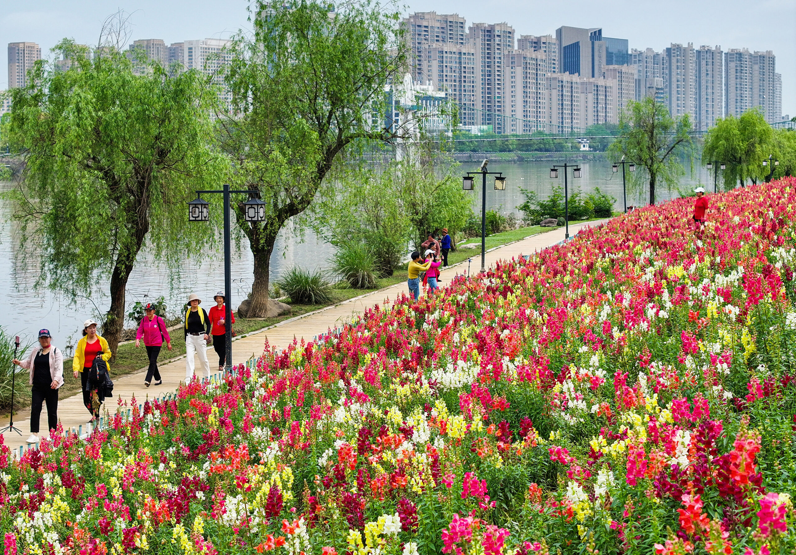4月15日,游人在安徽省黄山市屯溪区新安江畔公园观赏金鱼草花。近日,安徽省黄山市屯溪区新安江畔公园9万株金鱼草迎着春日缤纷绽放,吸引游人在花海里惬意徜徉。 未经允许不得转载:城市新闻网icitynews » 安徽黄山:城市公园春色缤纷