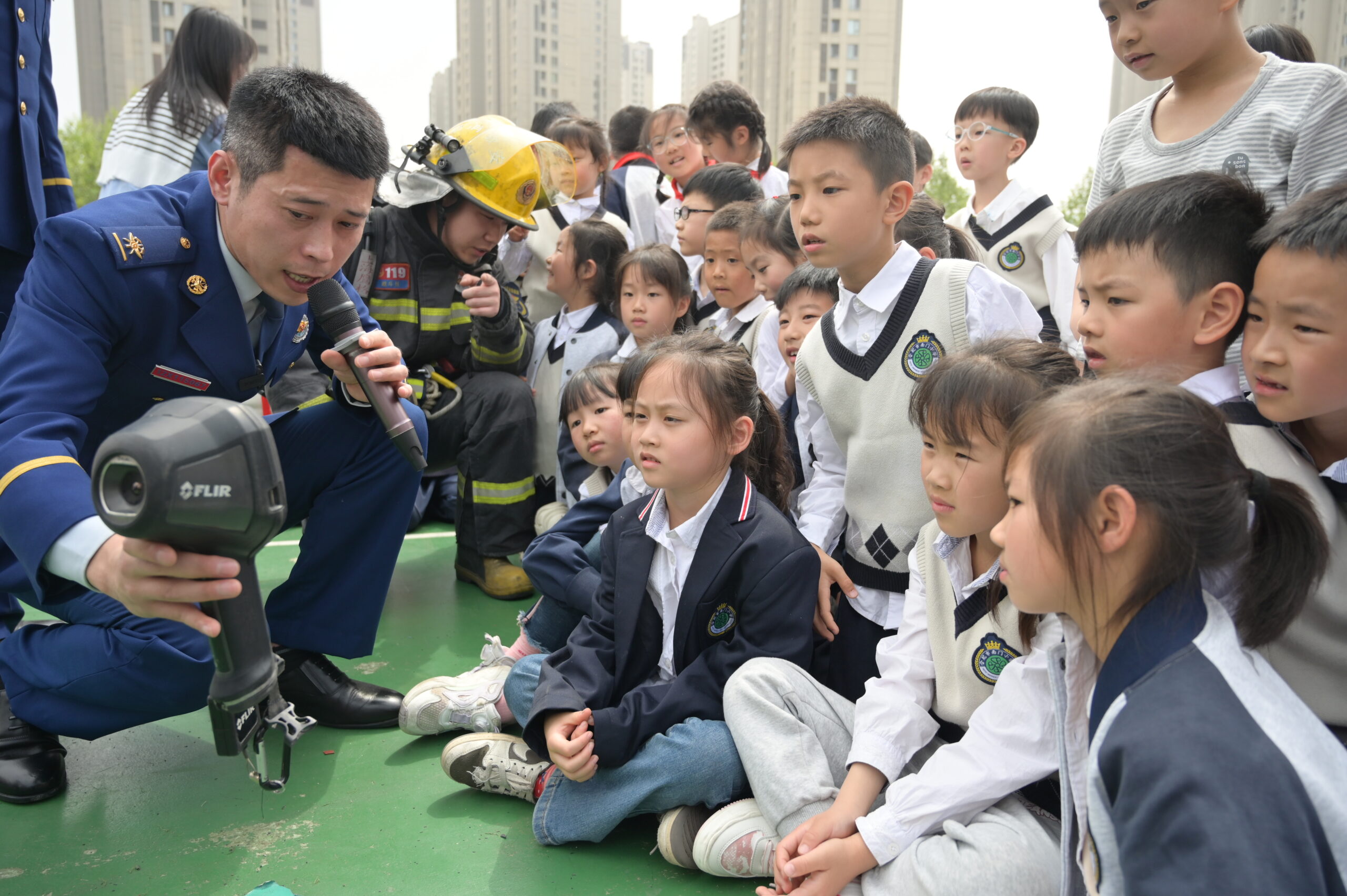 4月15日,消防员给孩子展示消防器械。当日,安徽省合肥市消防救援支队特勤二站的消防员驾驶消防车来到合肥市南门小学森林城校区,为师生进行体验式的消防安全教育。 未经允许不得转载:城市新闻网icitynews » 安徽合肥:消防安全知识进校园