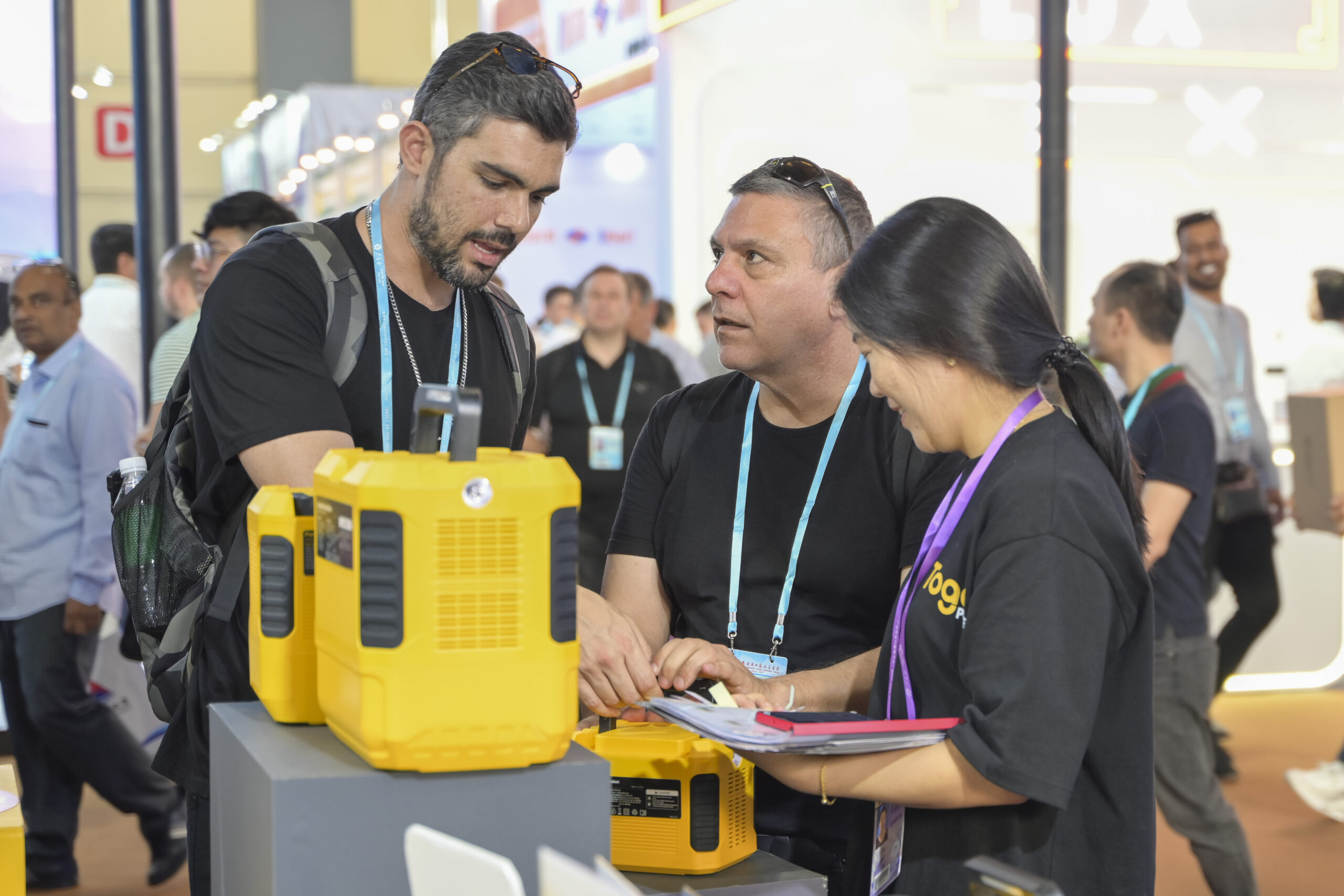 第135届中国进出口商品交易会(广交会)正在广州举行。本届广交会首期主题是“先进制造”。新能源汽车及智慧出行、工业自动化及智能制造、新能源等新题材、“新三样”相关展区进一步丰富。图为4月15日,福建天成时代新能源科技有限公司工作人员向采购商介绍便携式移动电源。