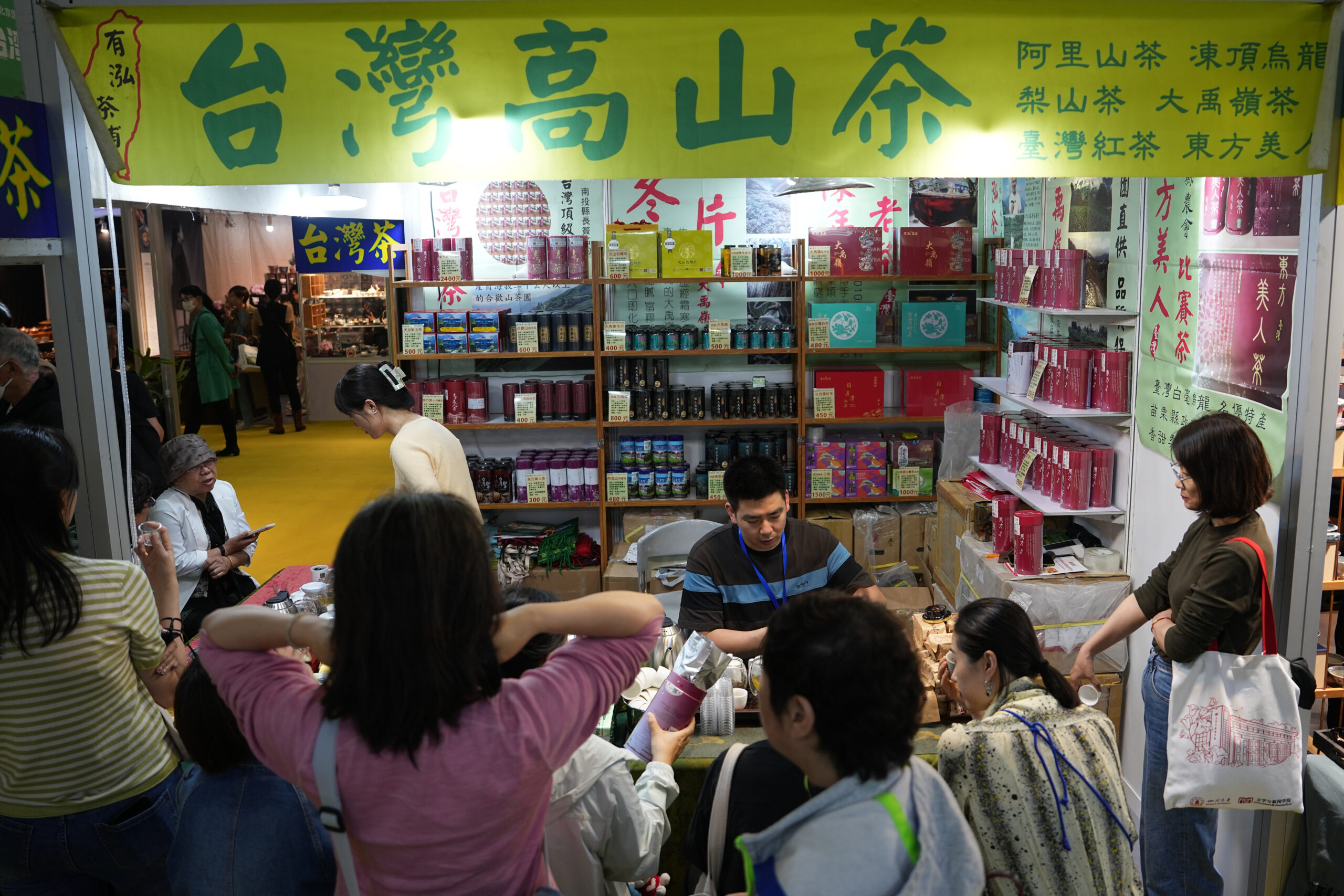 4月19日,第十六届北京国际茶业及茶艺博览会在全国农业展览馆开幕。作为2024年北方首场专业茶展,第十六届北京茶博会汇聚700多家中外参展商,产品涵盖六大茶类、茶具、再加工茶、代用茶、周边配套产品,展出面积24000平方米。图为茶博会上台湾茶商展位吸引观展民众驻足。