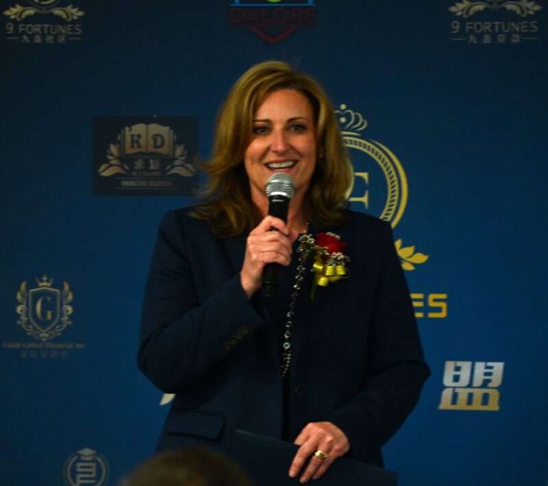 核桃市市议员秦振国(Eric Ching)代表赵宏(Diana Zhao)致词