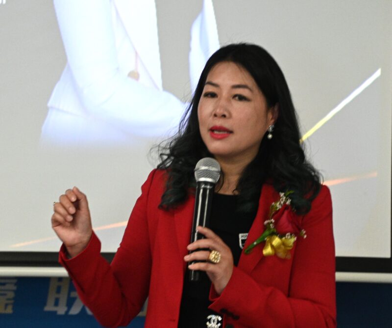 美国南加州华人社团联合会常务理事长朱俊英致词