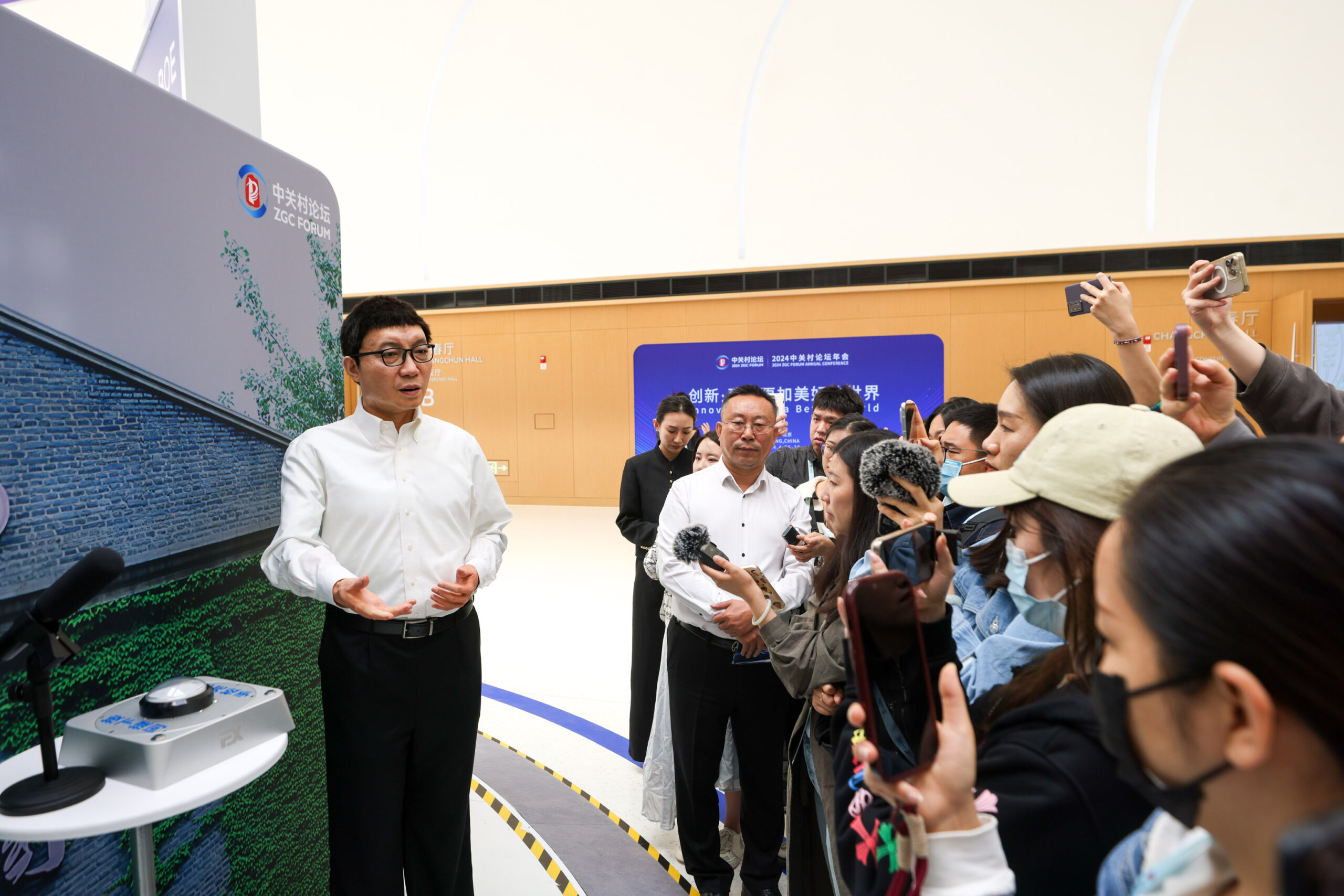 4月24日,记者探访位于北京的2024中关村论坛年会主会场——中关村国际创新中心。该中心建筑面积6.5万平方米,建筑高度12米,共三层。2024中关村论坛将首次在刚建成的中关村国际创新中心举办,时间定于4月25日至29日。今年论坛主题为“创新:建设更加美好的世界”。图为仿生机器人(左)吸引媒体记者关注。