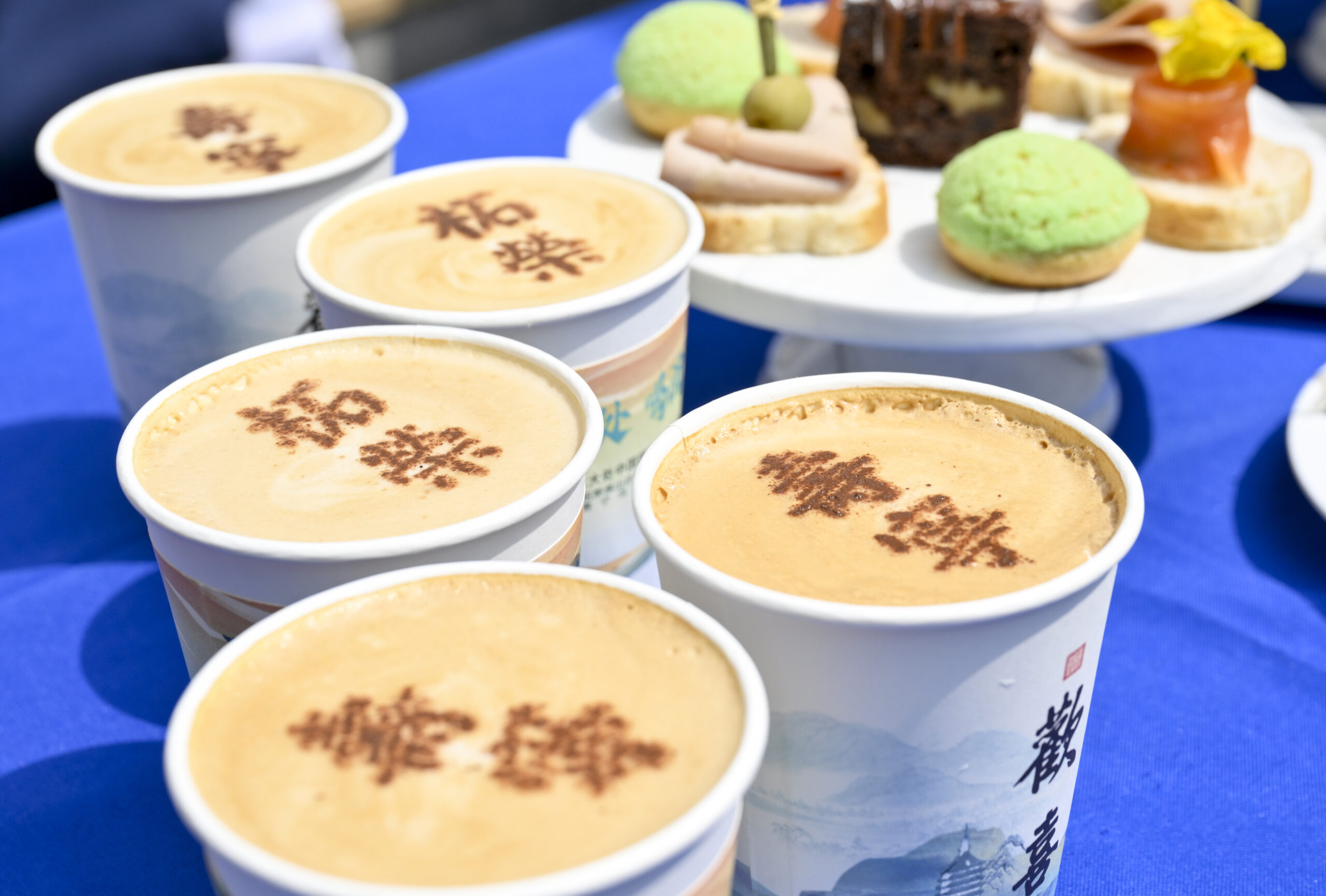 4月25日,第二十三届八大处中国园林茶文化节暨宁德(柘荣高山白茶、寿宁乌茶)文化周新闻发布会在北京八大处公园举行。据悉,文化节开展文艺演出、斗茶大会、茶文化及地方产品展销会、茶艺表演、青年节诗会等多种活动,于4月30日至5月5日在八大处公园举行。图为活动推出的限定版茶咖。