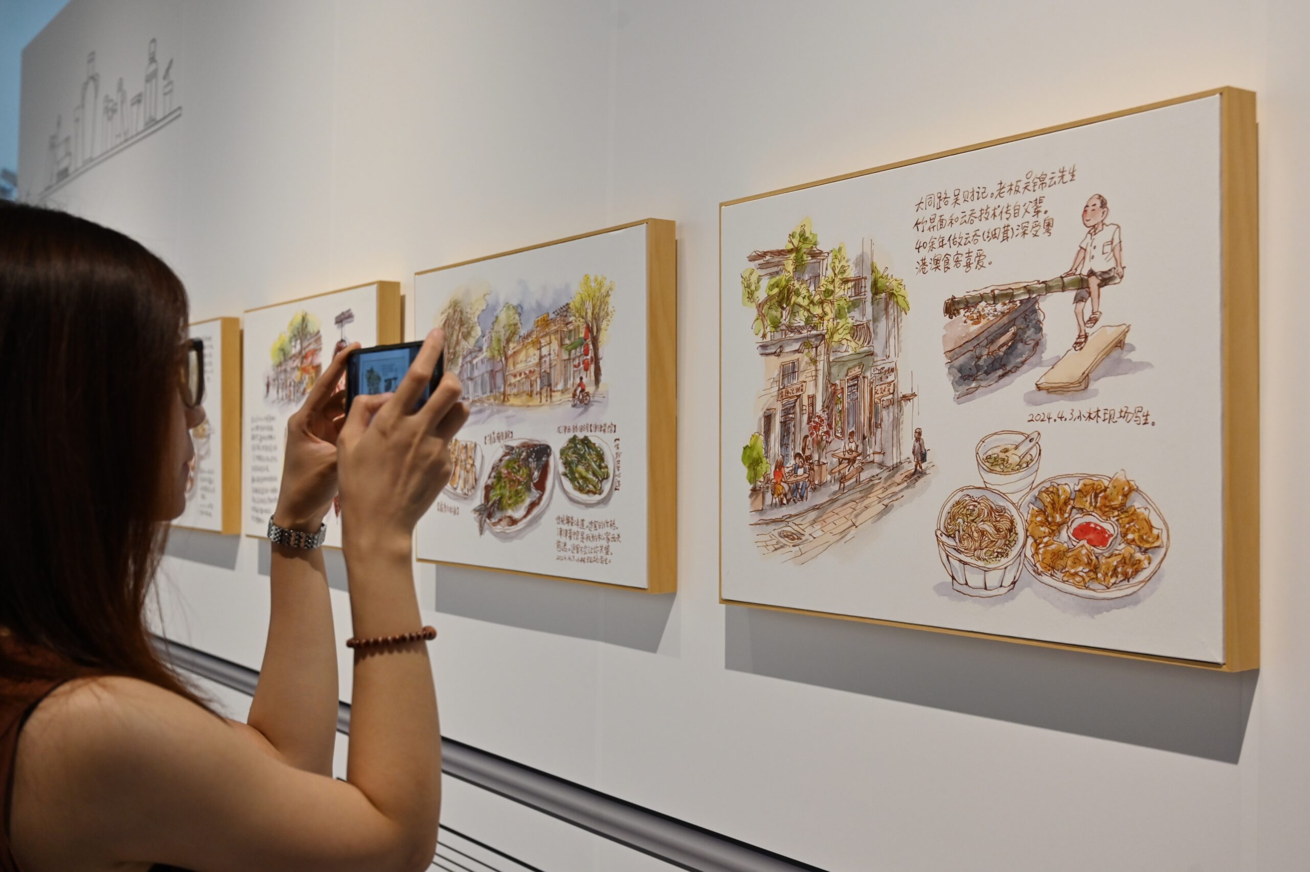 4月26日,“味在西关”小林美食漫画展在广州市荔湾区开展,吸引参观者观展拍照。“小林漫画”主创林帝浣通过画笔再现西关美食,展出作品包括荔湾区内餐饮名店的经典美食和西关街头广受欢迎的小吃。