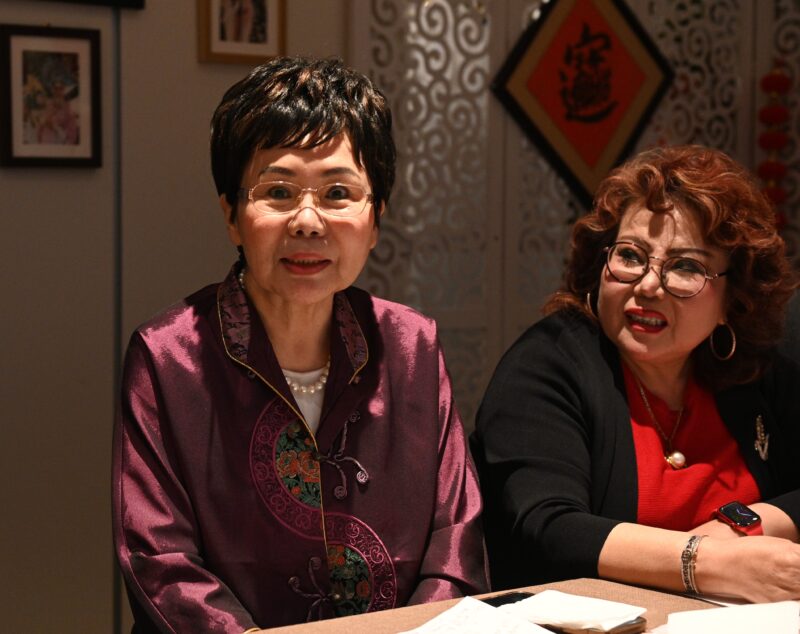 南加华联执行长林连连(左)讲话、著名歌唱家兼教育家陈和霞(右)