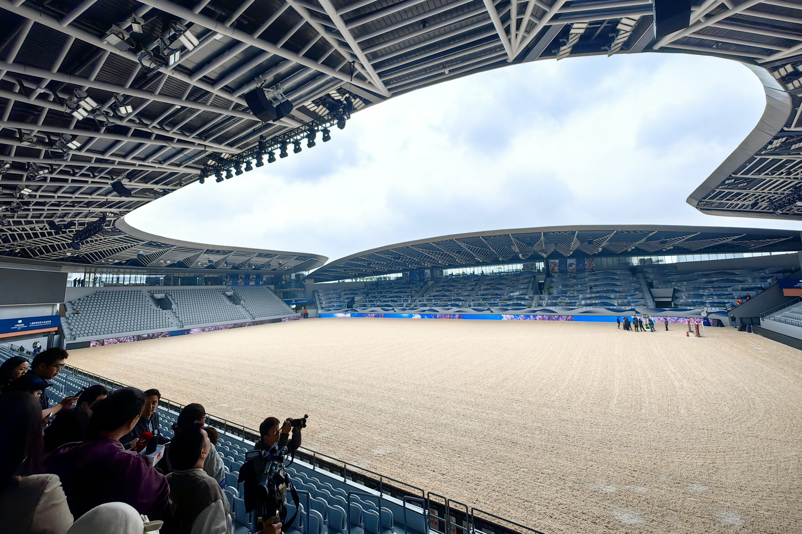 4月30日,上海环球马术冠军赛各项准备工作基本就绪。5月3日至5日,该比赛将在全新的上海久事国际马术中心上演,来自世界各地的73匹赛马为观众呈现一场视觉盛宴。图为上海久事国际马术中心。