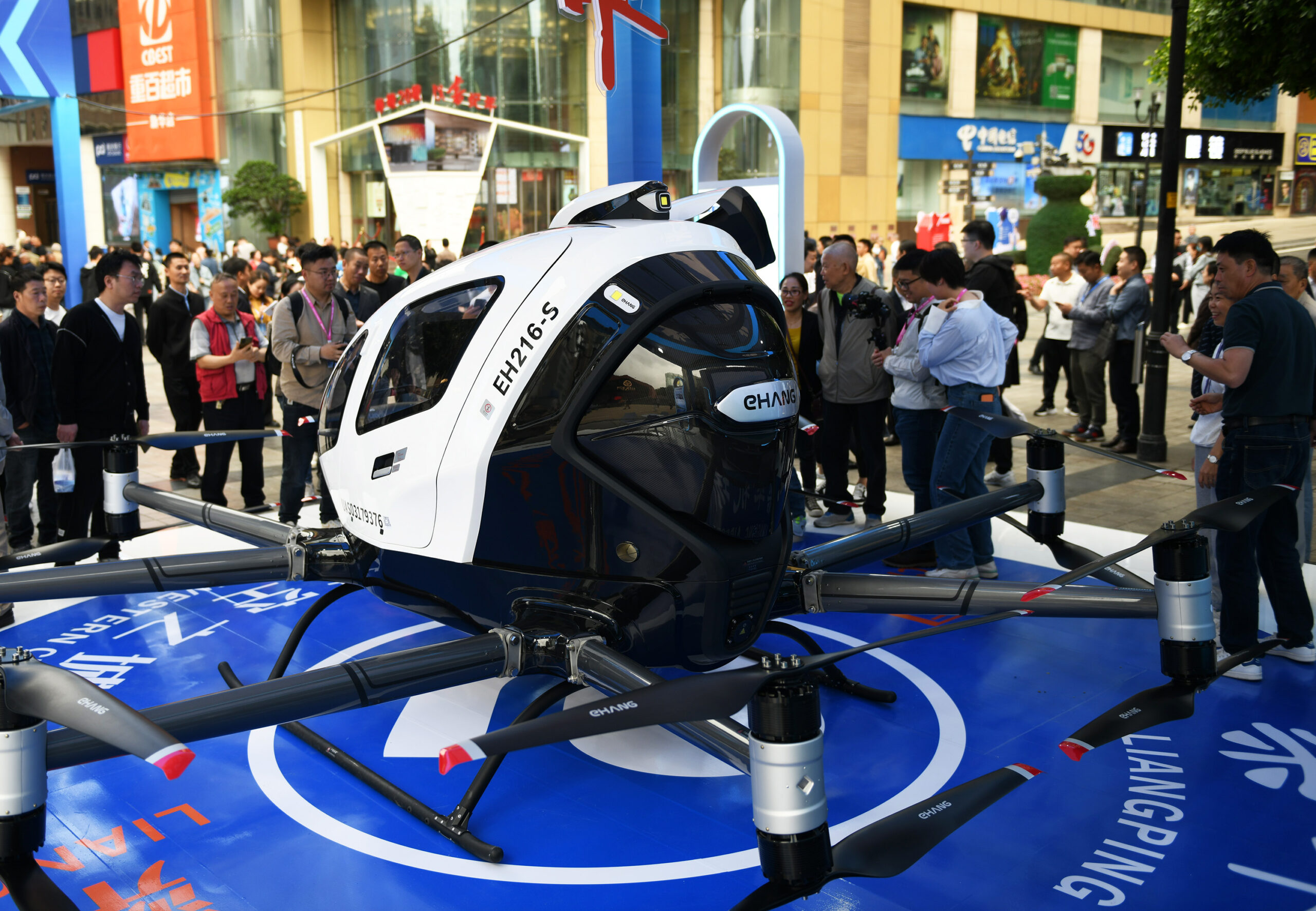 4月30日,无人驾驶载人航空器亮相重庆解放碑商圈,吸引众多市民参观。当日,2024首届重庆低空飞行消费周正式启动。 未经允许不得转载:城市新闻网icitynews » 无人驾驶载人航空器亮相重庆吸引市民打卡