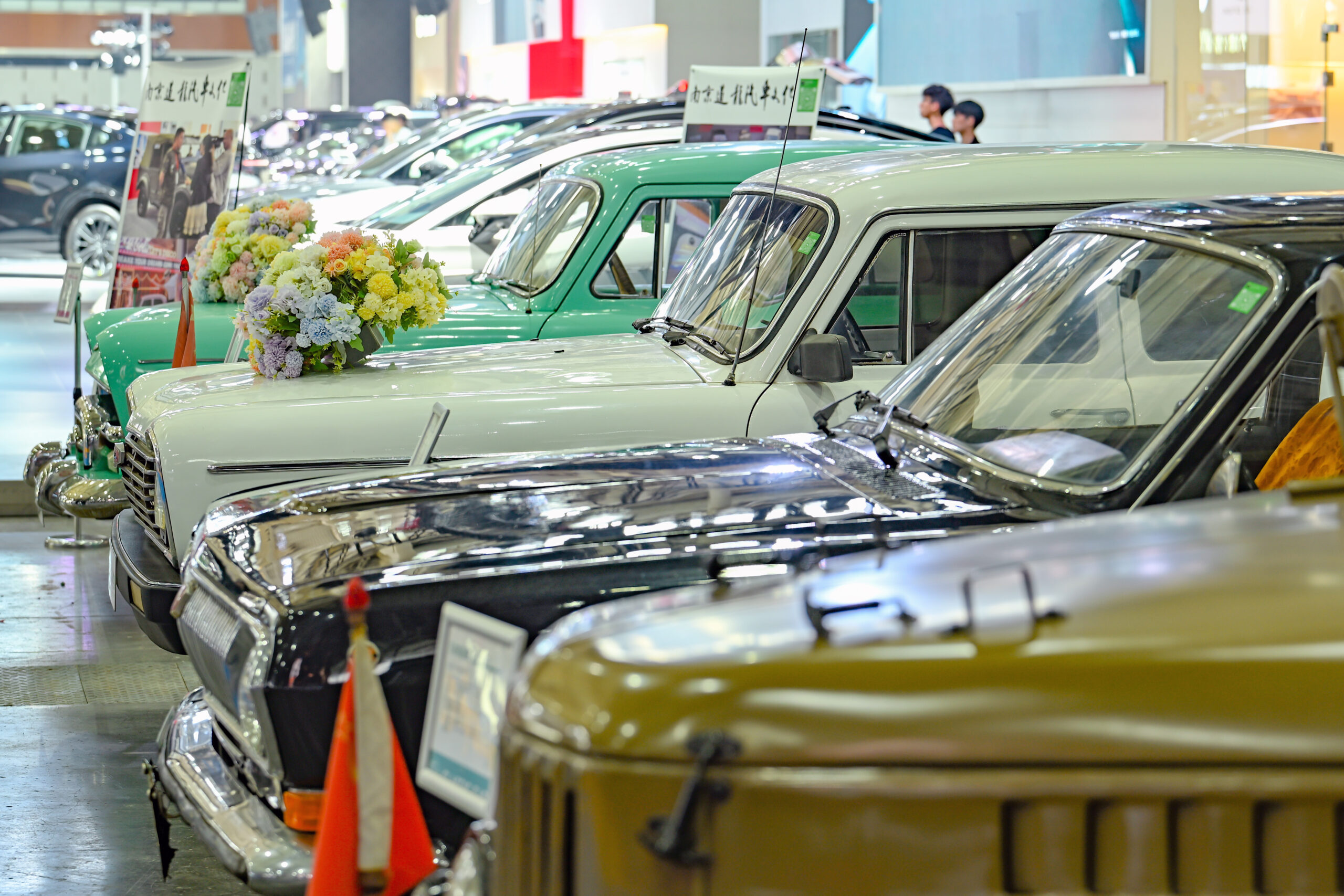 4月30日,2024第十七届中国(南京)国际汽车博览会暨新能源·智能汽车展在南京国际博览中心举行,70余个品牌集中亮相,展示汽车产业的新产品、新技术、新方向。图为展出的怀旧汽车。