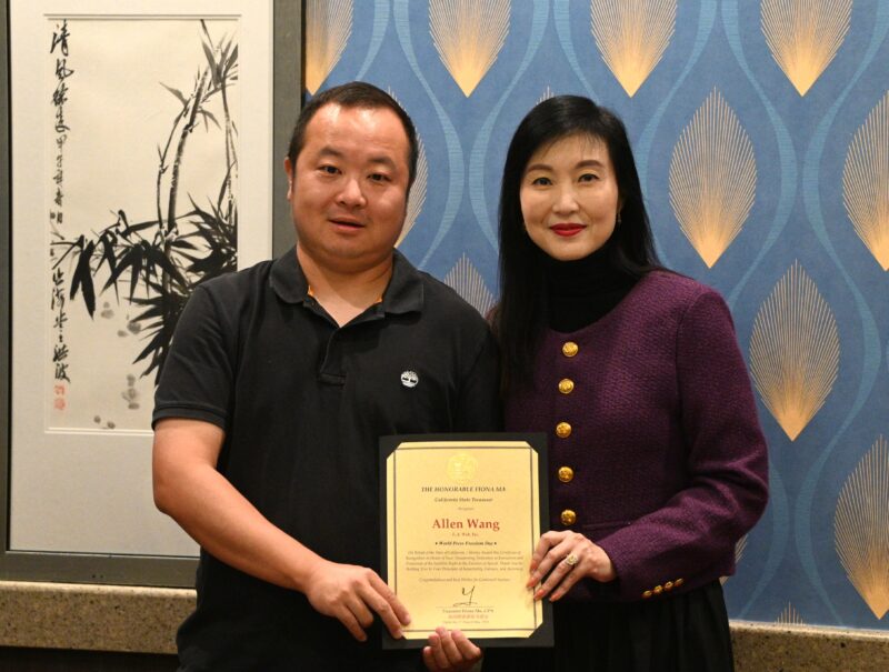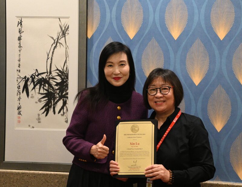受加州财务长马世云表彰的有城市卫视采访主任冯元兴、媒体人梁焯荣、孙卫赤、李玉冲、张筱童、殷剑锋、董宏兴、陆新、唐子儒、吕力川等。自2018年以来担任加州财务长的马世云,已宣布将于2026年竞选加州副州长。她的从政资历丰富,包括于2002年至2006年期间担任旧金山市议员,2006年至2012年期间担任加州众议员,2014年至2018年期间担任加州平税局委员,2018年当选加州财务长至今。