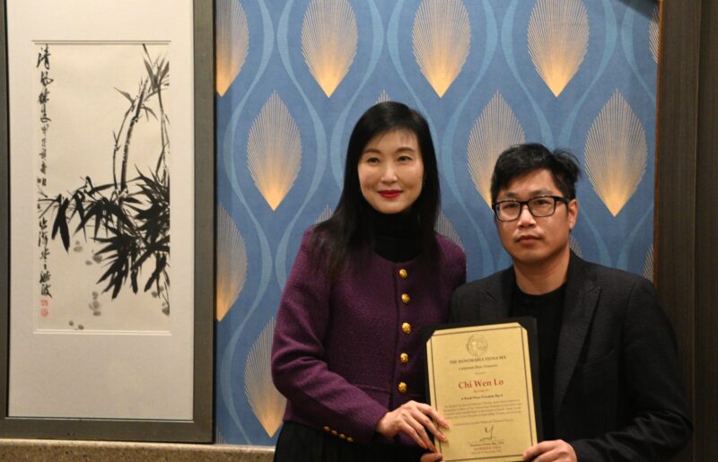 天下卫视记者代表罗继文接受蒙特利公园市议员饶影凡颁表扬状