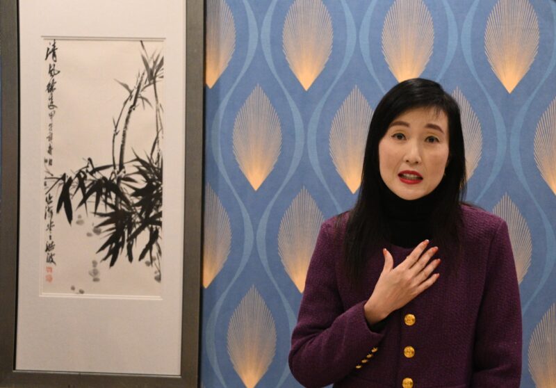 蒙特利公园市议员饶影凡 (Yvonne Yiu)接受各大媒体记者访问