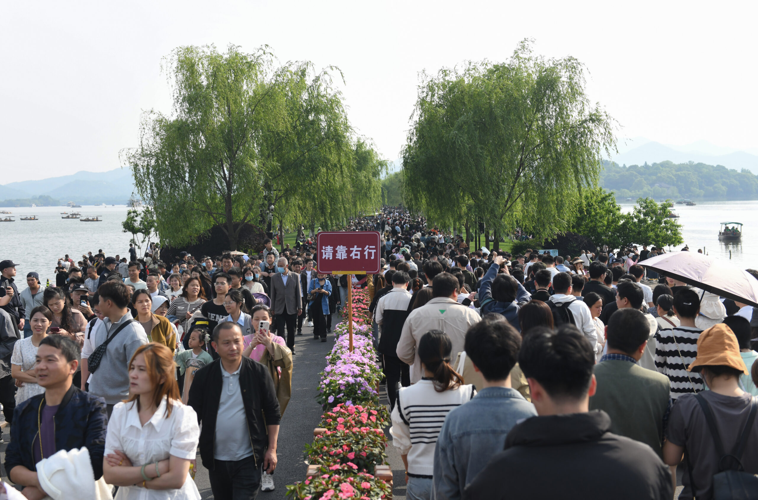 “五一”假期五天,浙江杭州西湖景区共接待客流量323.03万人次,同比增长14.23%。图为5月1日,西湖断桥和白堤再现“人潮”景观。 未经允许不得转载:城市新闻网icitynews » “五一”假期杭州西湖景区游客接待量323.03万人次