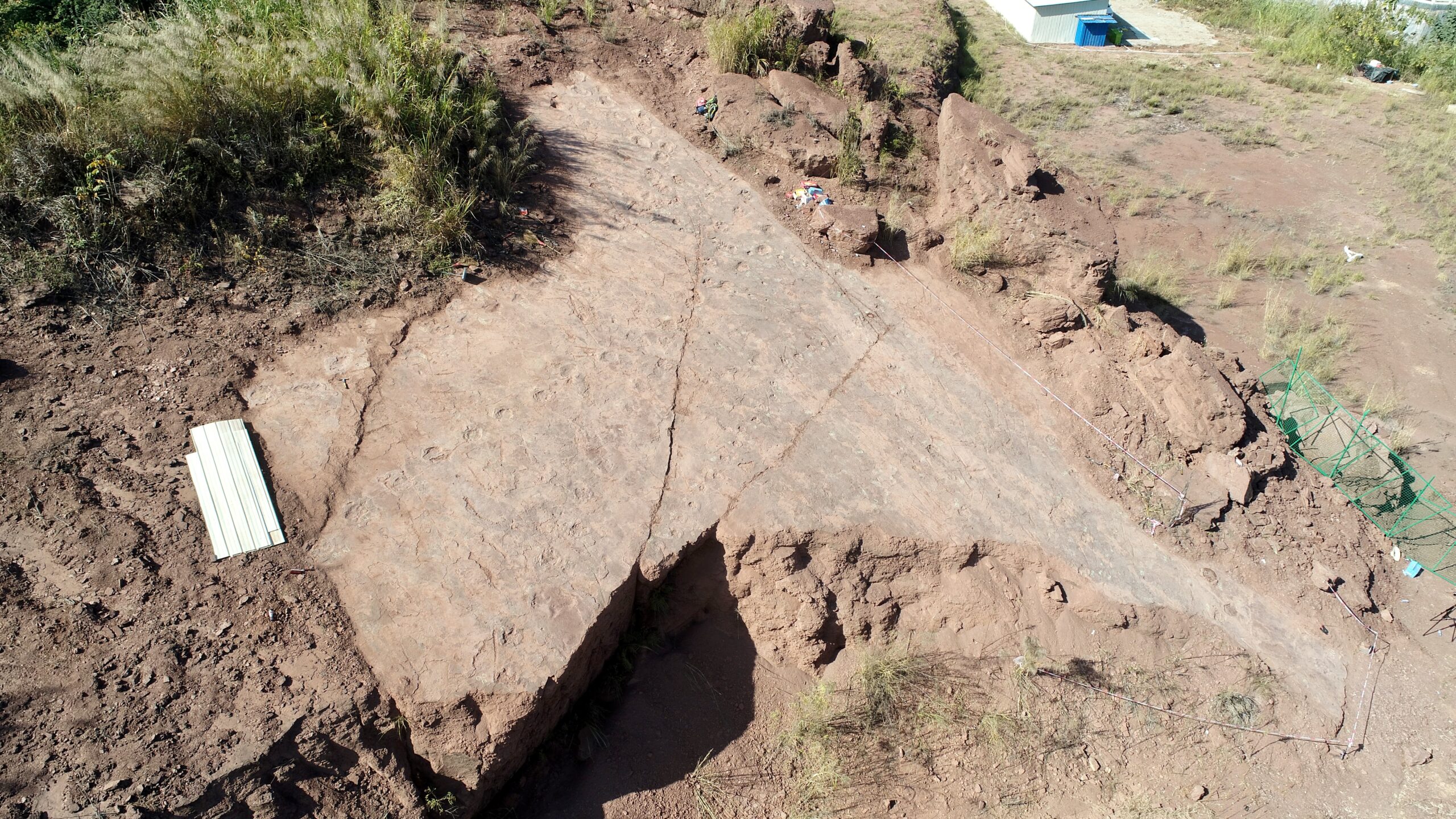 5月6日,全球最大的恐爪龙足迹“福建足迹”新闻发布会在福建博物院举行。中国地质大学(北京)、福建省英良石材自然历史博物馆领衔的中外科学家团队宣布:在福建龙岩上杭龙翔恐龙足迹群发现的大型恐爪龙类恐龙足迹,是已知全球最大的恐爪龙类足迹,并建立了新的足迹属种——“英良福建足迹”。图为2020年11月10日拍摄的福建龙翔恐龙足迹群航拍图。