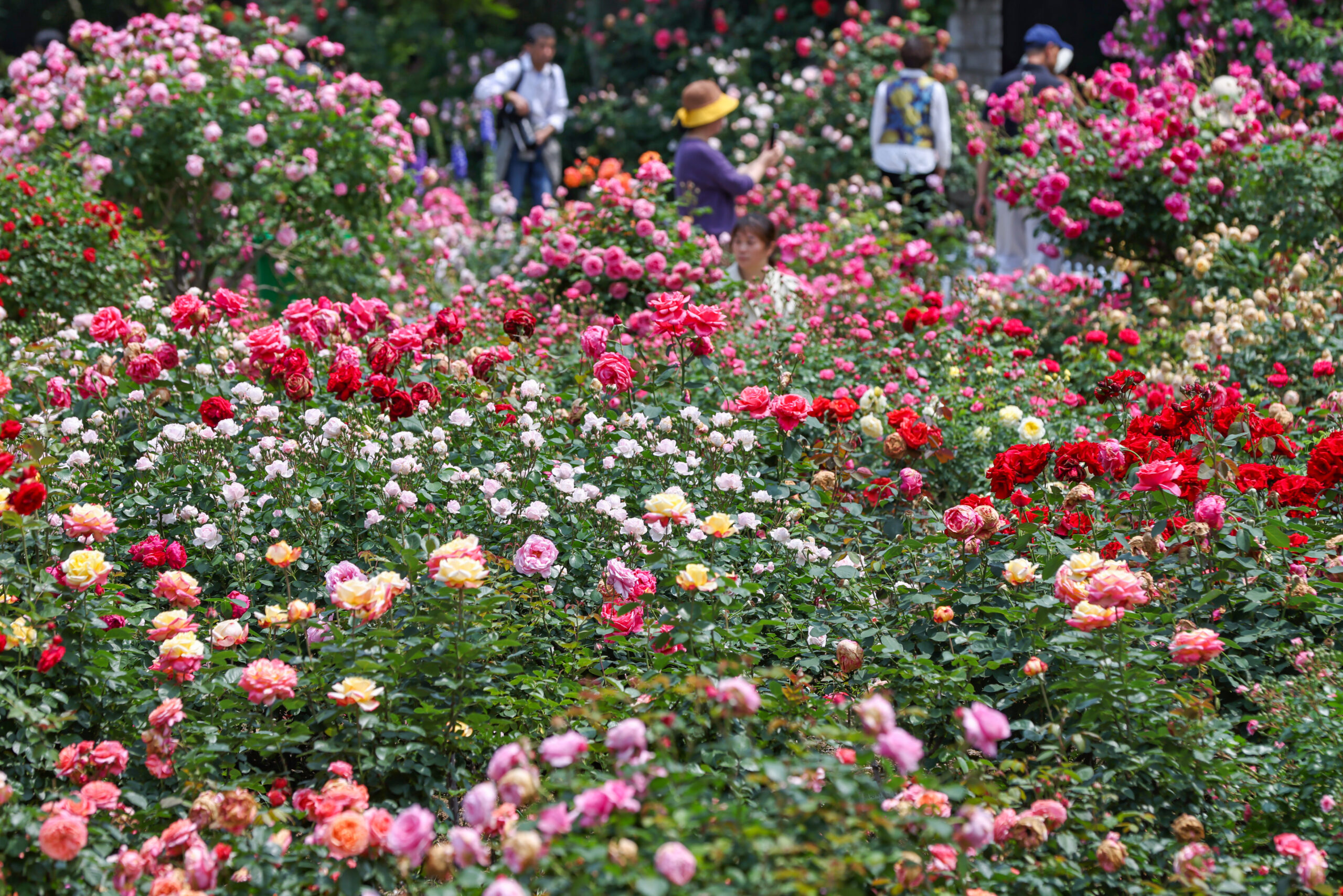 5月7日,江苏南京紫金山上蔷薇园内的月季、玫瑰等迎来盛放期,花团锦簇香满园。
