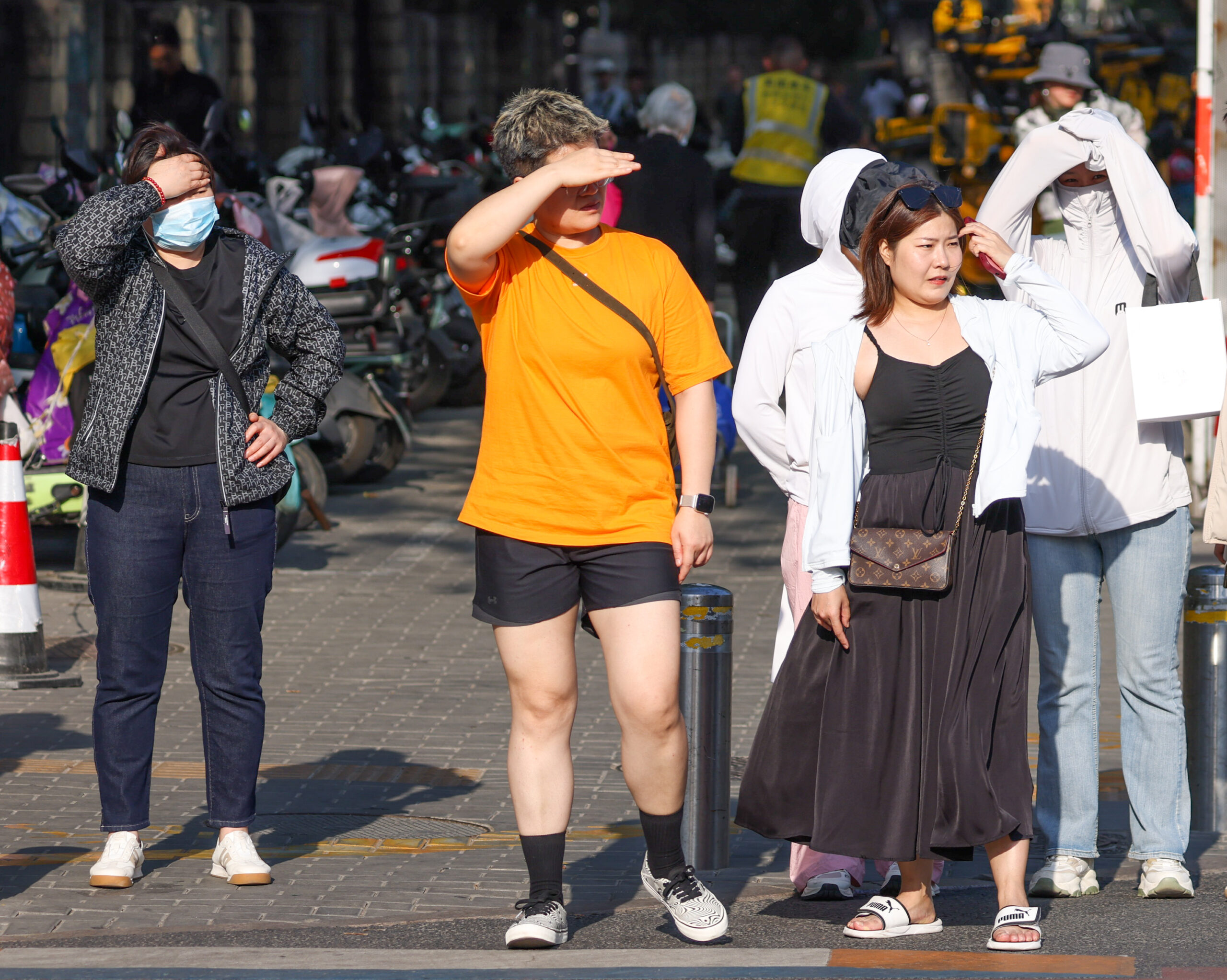 5月8日,市民在街头出行。当日,北京迎来2024年首个30℃天气。
