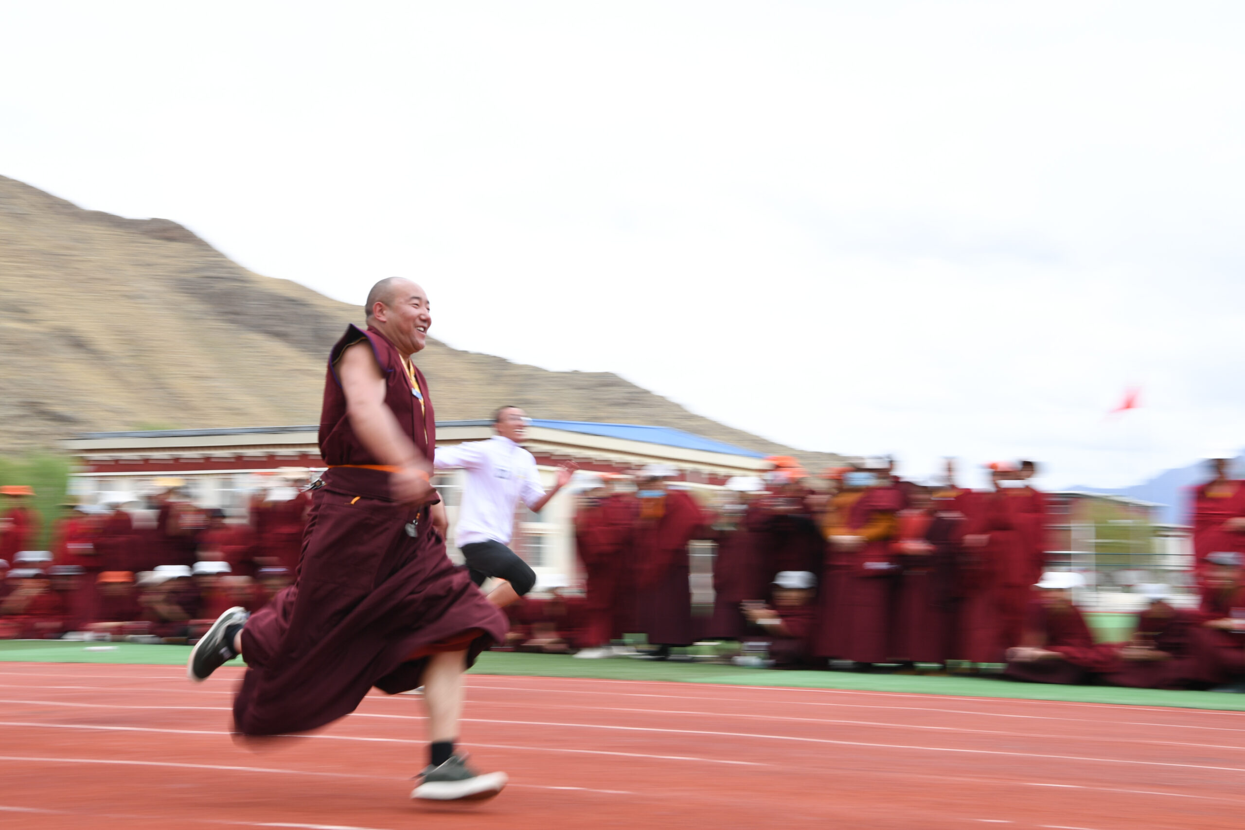 5月8日,西藏佛学院第六届运动会在拉萨开幕。此次活动共举行三天,设田赛、径赛和趣味运动项目等14项。全院教职工、经师以及学员共同参与。图为僧尼参加100米比赛。 未经允许不得转载:城市新闻网icitynews » 西藏佛学院第六届运动会开幕