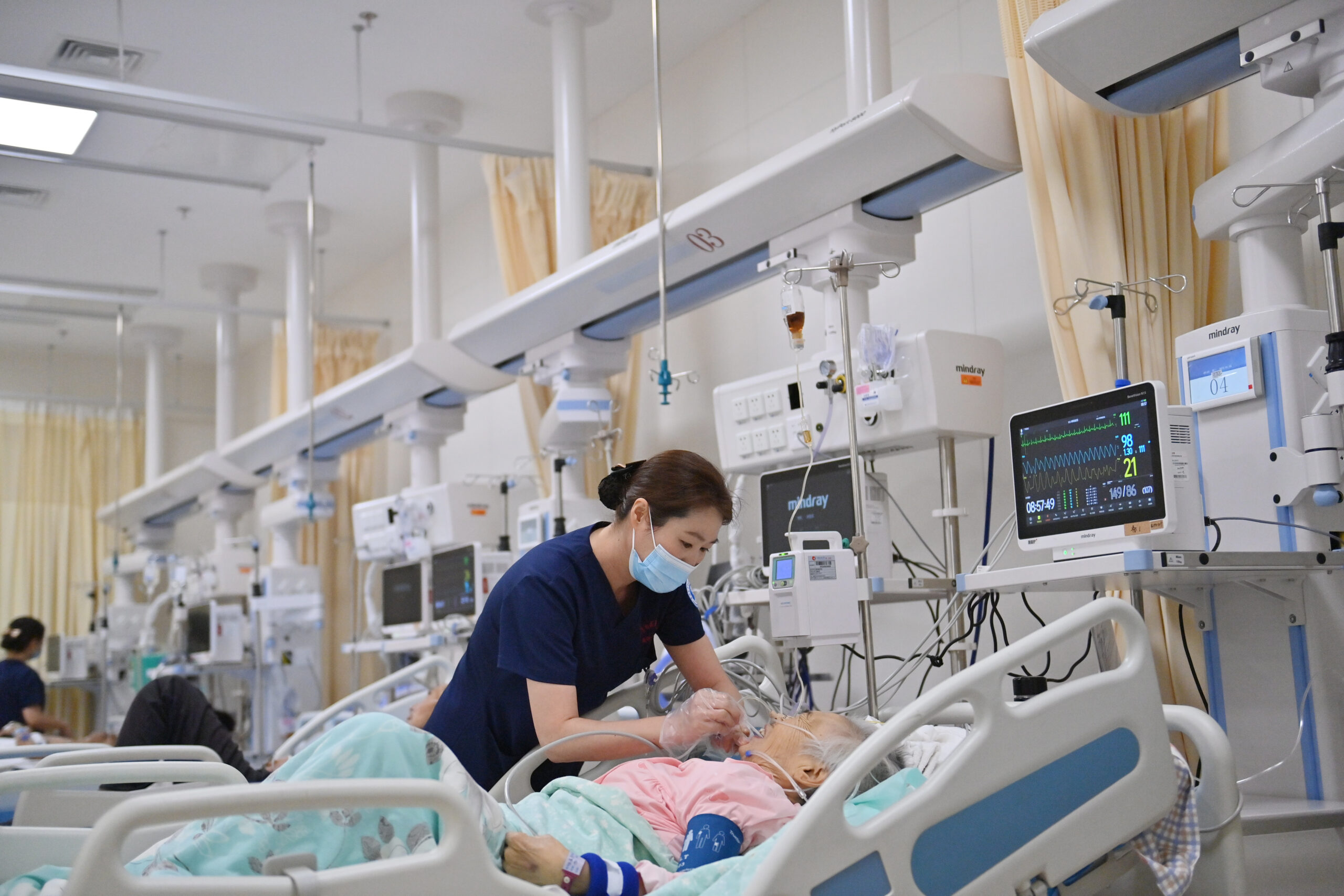 5月8日,位于吉林省长春市的吉林大学白求恩第二医院,张力为患者吸痰。张力是这家医院急诊科护士长,从事急诊工作已有22年的时间。急诊科可以称得上是医院中的“尖刀部队”,这里的护士们每天都在全力以赴与“死神”赛跑。张力说,她希望所有患者都能平安回家。