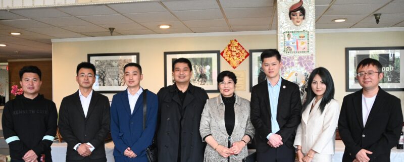 美国大西北总商会会长江风年(右4)、理事长杨普(左4)、监事长姜奇(右1)、知名青年导演赵小贺(左1)、秘书长刘素宁(右2)、张奔会长(右3)等