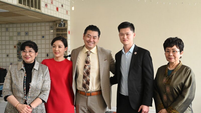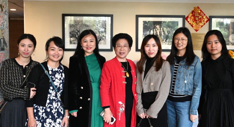 知名艺术家盛壹莉(左3)、盛莉(左4)、纽约大学研究生李婕妤(mimi li右3)与女子乐坊演奏员合影