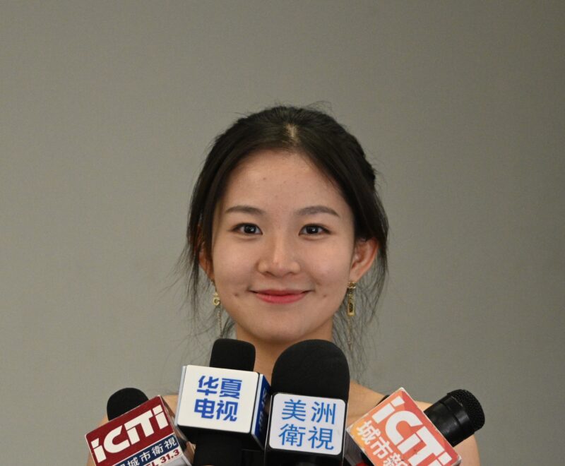 美西南高校篮联谊赛活动负责人李安妮接受各大媒体记者访问