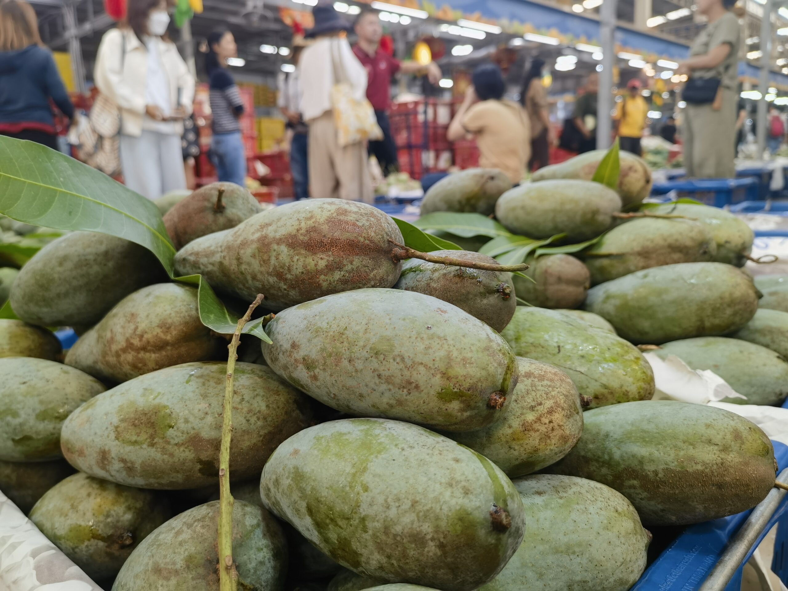 当地时间5月14日,在泰国巴吞他尼府的达拉泰水果批发市场,大量芒果在展卖。目前是泰国各种热带水果上市的旺季。