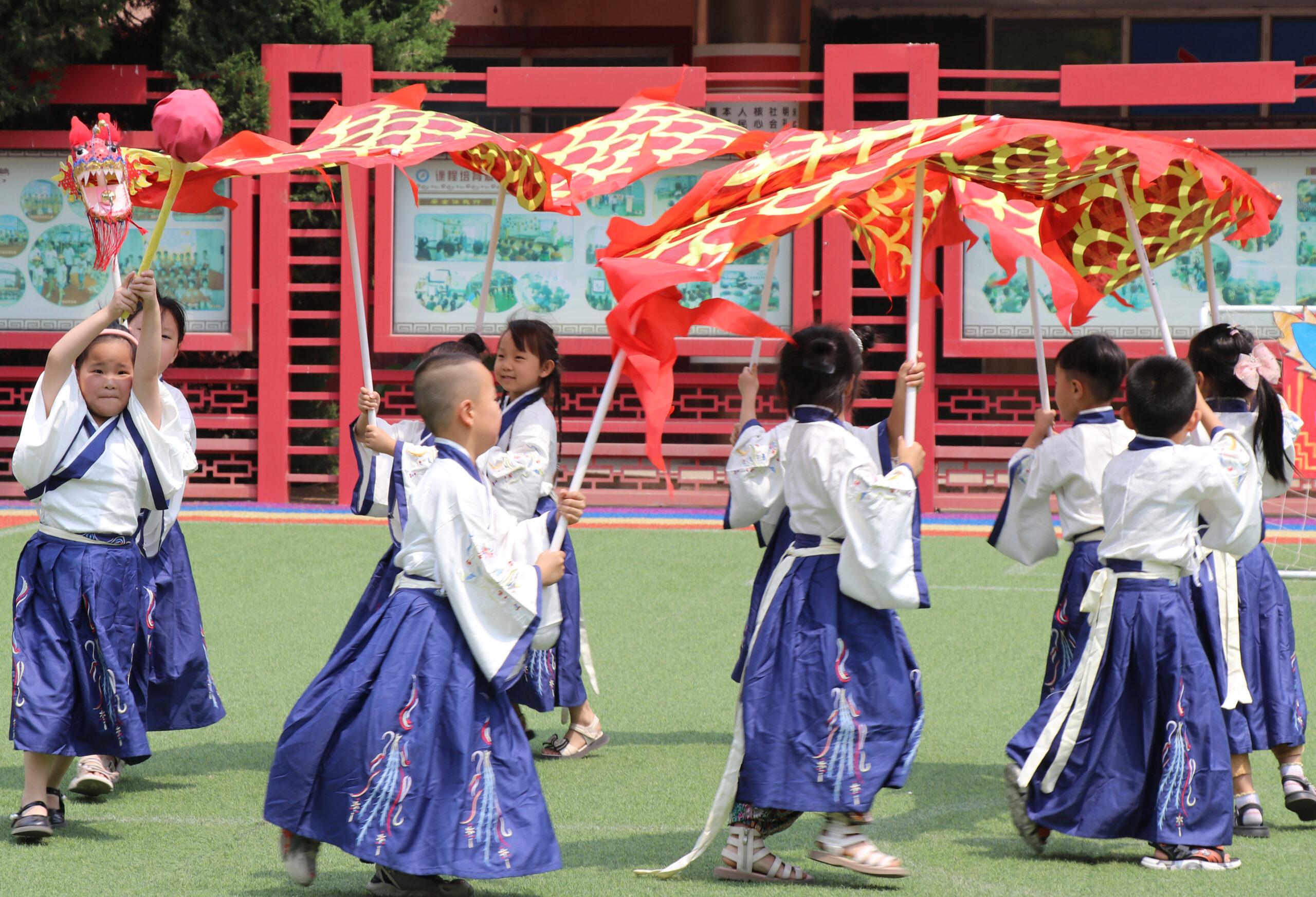 6月6日,河北省安平县幼儿园长安街园的孩子进行《“龙舟”竞渡》舞龙表演。端午节将至,小朋友通过民俗活动感受传统节日文化。