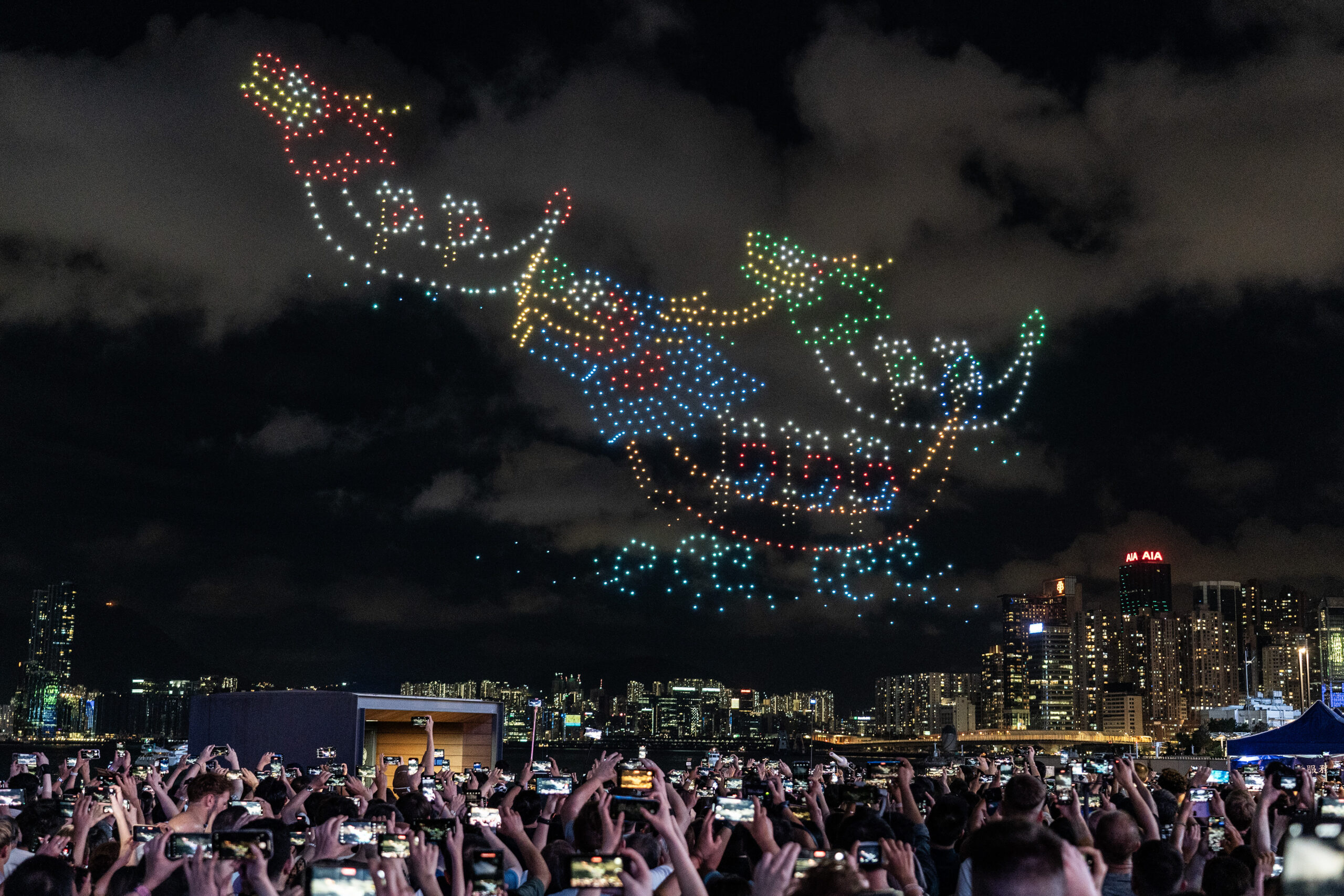 6月10日晚间,香港湾仔维多利亚港夜空上演无人机表演,1000架无人机组成多个端午节主题图案,令市民游客度过快乐的节日夜晚。 未经允许不得转载:城市新闻网icitynews » 无人机表演扮靓端午节香港夜空