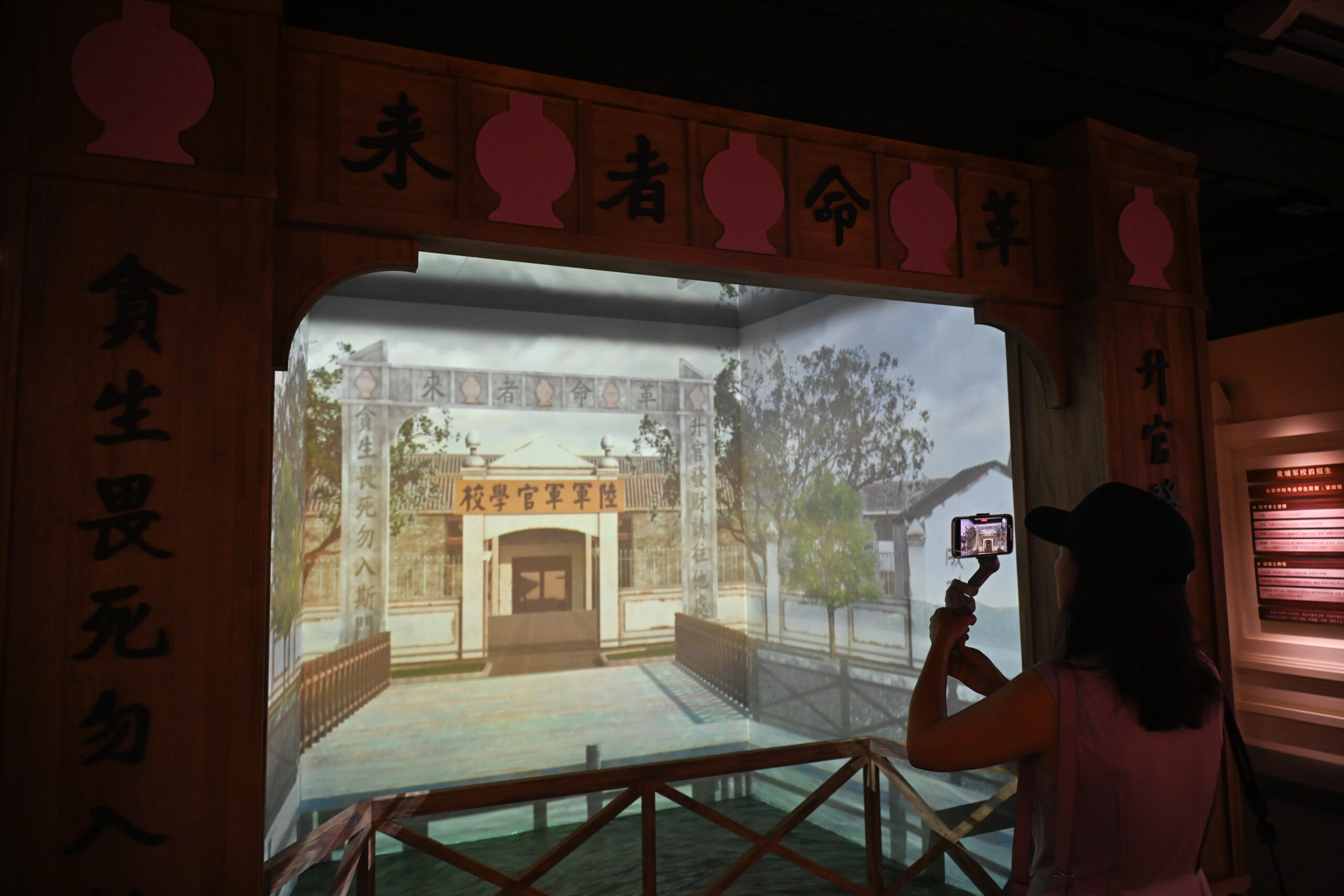6月11日,广东广州,一名记者在黄埔军校旧址纪念馆参观拍摄。当日,黄埔军校建校百年媒体探营活动举行。2024年是黄埔军校创办100周年,此次探营活动为黄埔军校旧址纪念馆闭馆进行陈列展览更新后,面向媒体提前开放。
