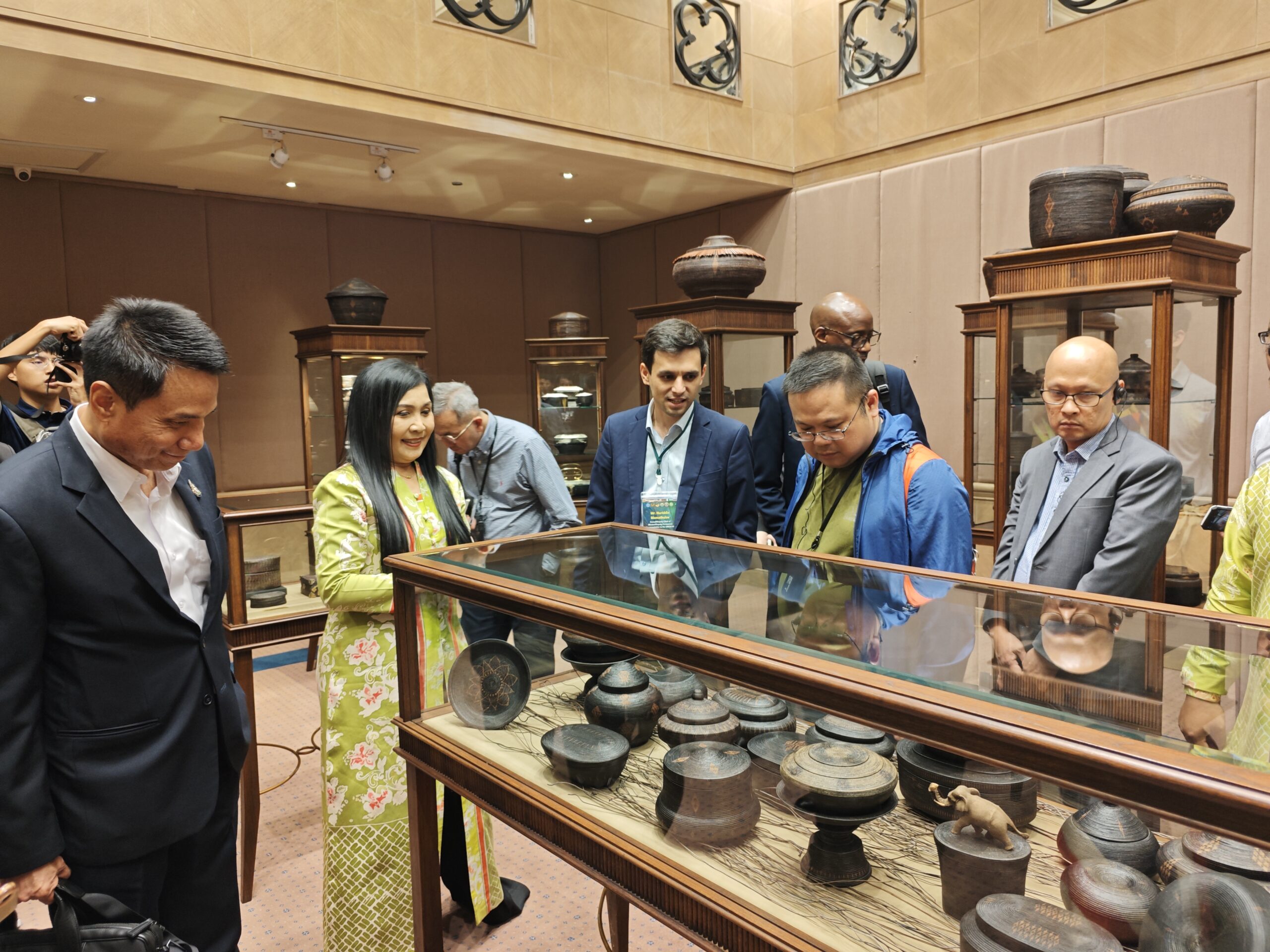 当地时间6月11日,多国外交官参观泰国南部省份宋卡的工艺品展览。