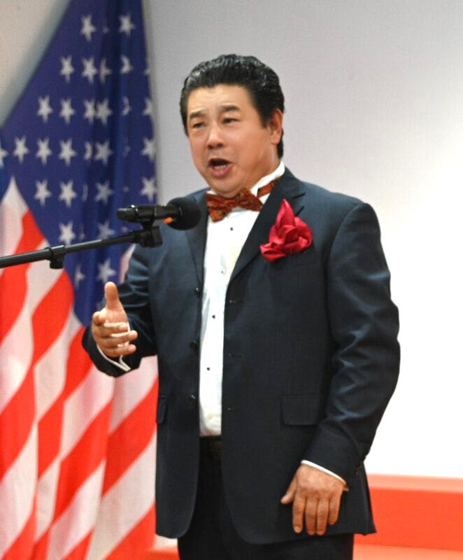 加州爱乐艺术团团长、著名男高音歌唱家徐佰生致词并演唱《大江东去》