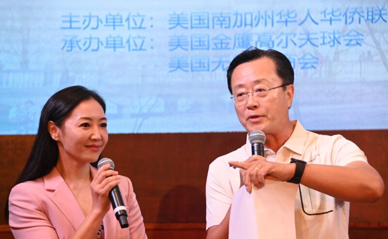 赛事主办方、美国南加州华人华侨联合总会会长蔡成华(左)、赛事承办方、美国无锡总商会会长邱堂善(右)