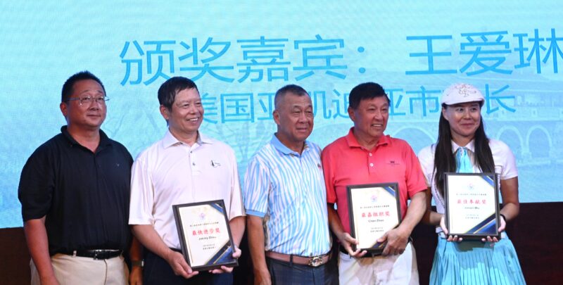 颁奖晚宴特对洛杉矶华人华人华侨和高尔夫有所贡献者颁发:最嘉奉献奖:vivian Wu,颁奖嘉宾:赵晨(美国金鹰高尔夫球会会长)、最嘉组织奖:Chen Zhao 颁奖嘉宾:杨上海(欧亚球会加州分会会长)、最快进步奖:Jimmy Zhou,颁奖嘉宾:张明巨(美国黄鹤高尔夫球会会长)、社会贡献奖:Steve Chen,颁奖嘉宾:王爱琳(亚凯迪亚市副市长)、华人华侨领袖奖:Chenghua Cai,颁奖嘉宾:王爱琳(亚凯迪亚市副市长)。