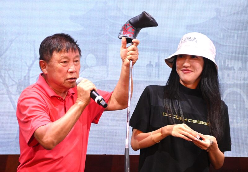 美国内蒙古经贸联合总会会长乌日娜(右)、美国金鹰高尔夫球会会长赵晨(左)