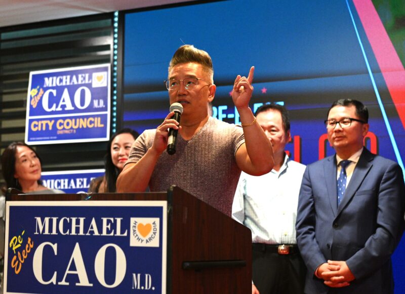 阿卡迪亚市议员高卿医师(Michael Cao, M.D.)感谢市民支持