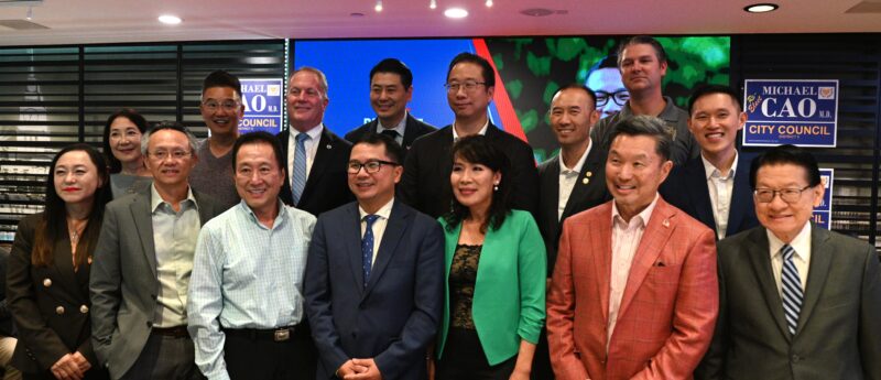 阿卡迪亚市前市长、现任市议员郑博仁(Paul Cheng)偕夫人顾瑷妮(Ainy Gu)、市议员傅达文(David Fu)、副市长王爱琳(Eileen Wang)、前市长戴守真(Sho Tay)偕夫人戴慧文(Sherry Tay)、圣盖博市市议员吴程远(John Wu)、柔似蜜市議員邓树灿 Sean Dang、杜瓦提市市议员康佳堔(Sam Kang)、蒙特利公园市市长吴绍荣(Vinh Ngo)、社区领袖张勇、冯军、林日升、陈慧碧、张奔、黄联胜、郭蕾等出席支持。