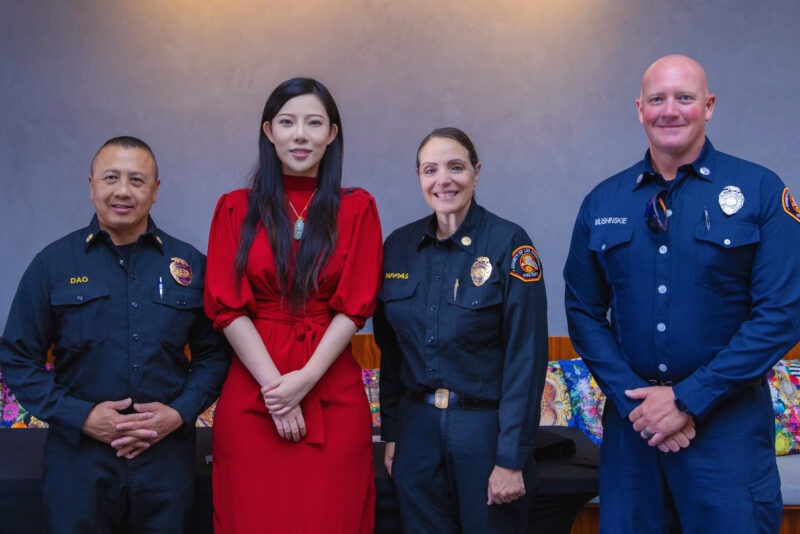 活动当天吸引了众多社区领袖和媒体参与,包括美国青岛总商会会长刘铭,美国巾帼会理事长方圆圆,CIRC青少年教育赋能基金会会长Vince Wu 、副会长 Kent Jiang、洛杉矶县消防局副局长Eleni Pappas、助理局长Khoi Dao、上尉David Dantic、消防医护员Jacob Dao、上尉Derek Mushinskie、消防专员Mario Camarena、消防员Joseph Cox、Justin Wommack。42号消防车也一同亮相,与来宾互动,展示专业救援装备,为活动增添别具意义的安全与公益色彩。