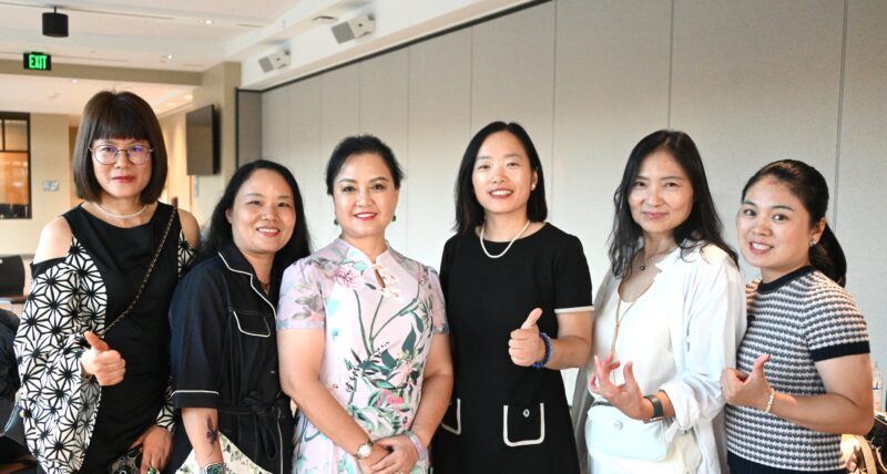 橙县华⼈联合会创会会⻓周晏⽻(左3)与姐妹们