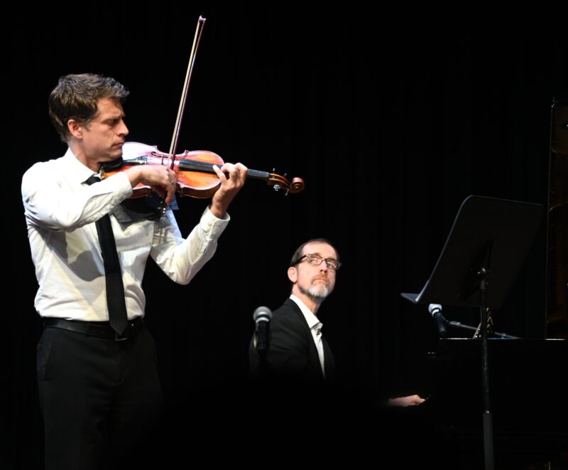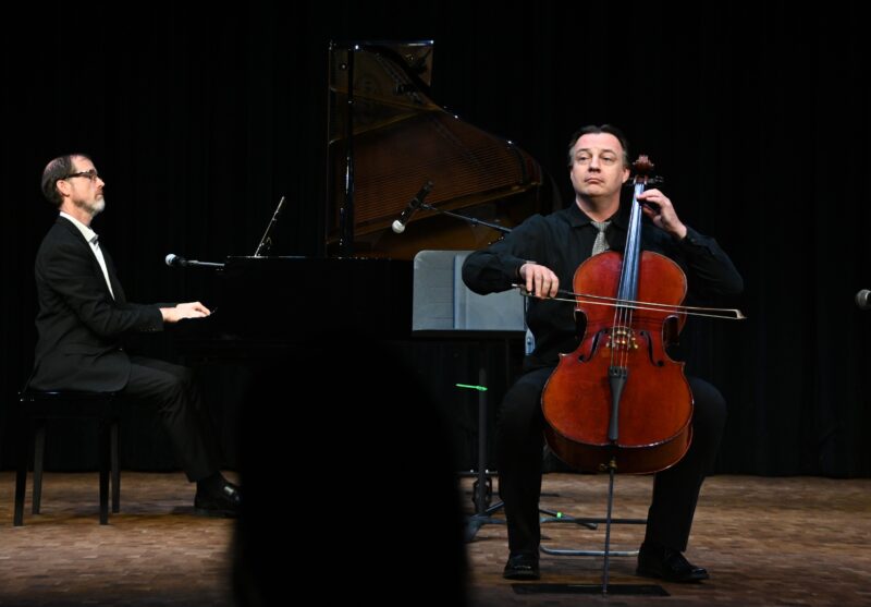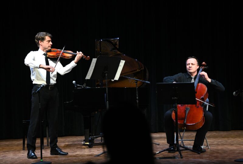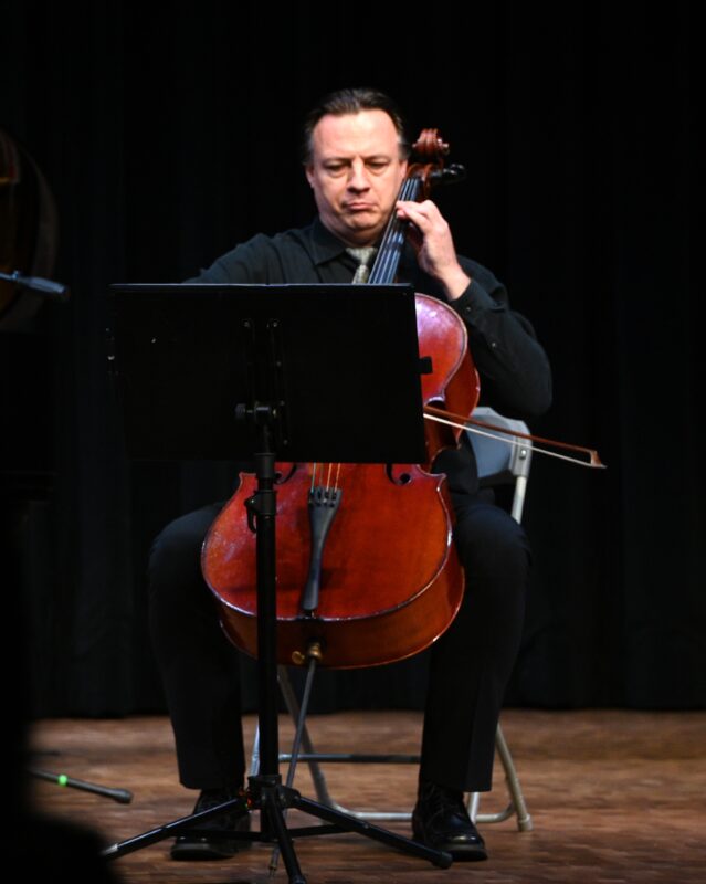 ⾳乐会尾声,Dr. Joel Clifft 演奏⽪亚佐拉《Libertango》,展现探⼽的热情;Dr. Marek 与 Dr. Clifft 合作克莱斯勒《爱的忧伤》,娓娓诉说爱与思念。最后,三位教授 Russell(⼩提琴)、Szpakiewicz (⼤提琴)、Clifft(钢琴) 携⼿带来《Por Una Cabeza》,在热烈浪漫的探⼽旋律中将⾳乐会拉向新的音乐境界。