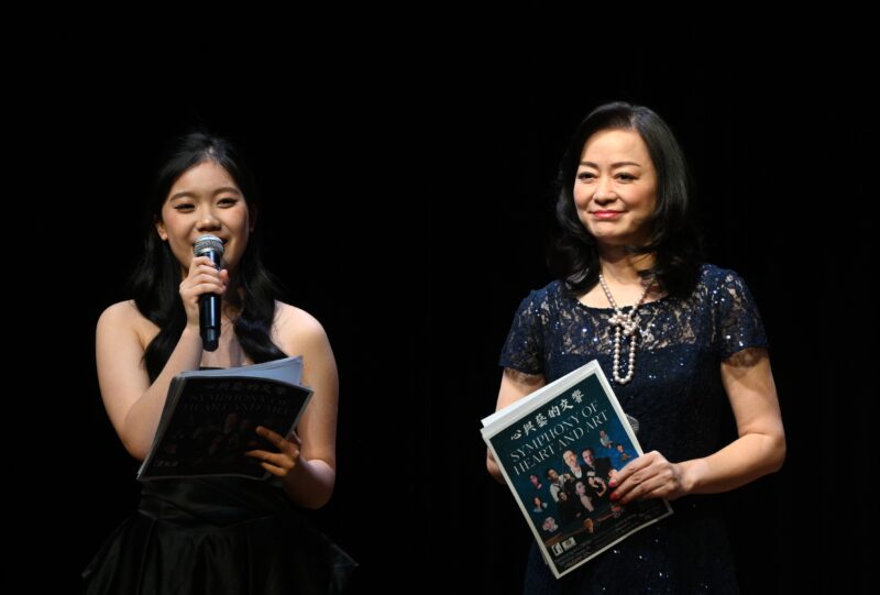 巾帼会会长方蕾(右)、青年钢琴家Yilin Kang主持音乐会