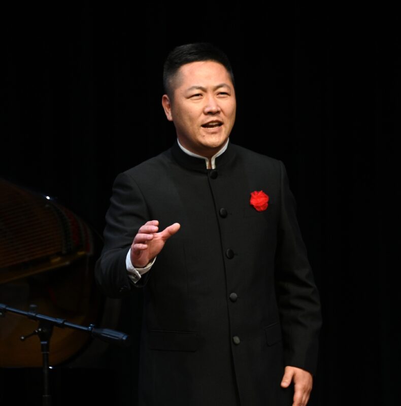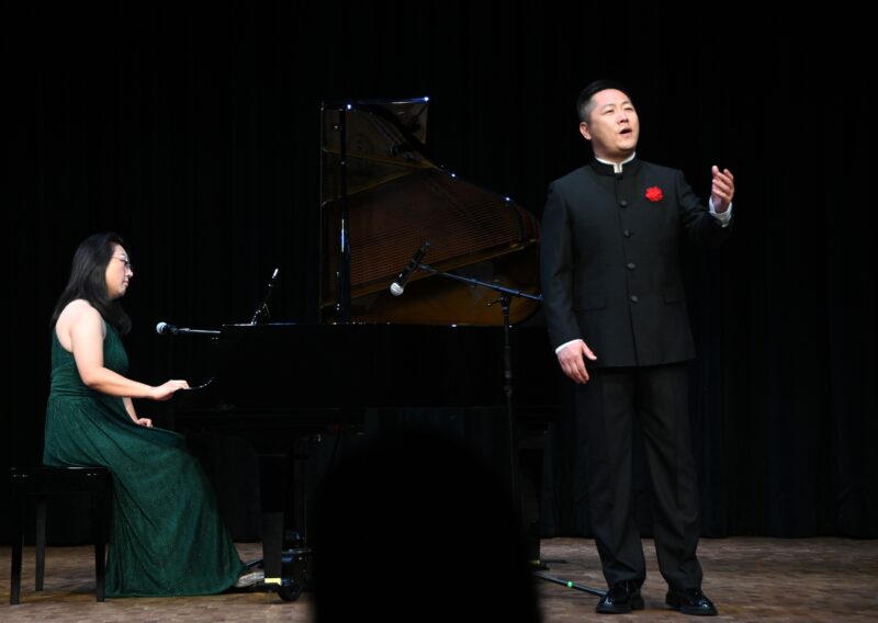 著名男⾼⾳歌唱家李凌利与合作钢琴家范旭欣带来中国⺠歌《雪⽩的鸽⼦》