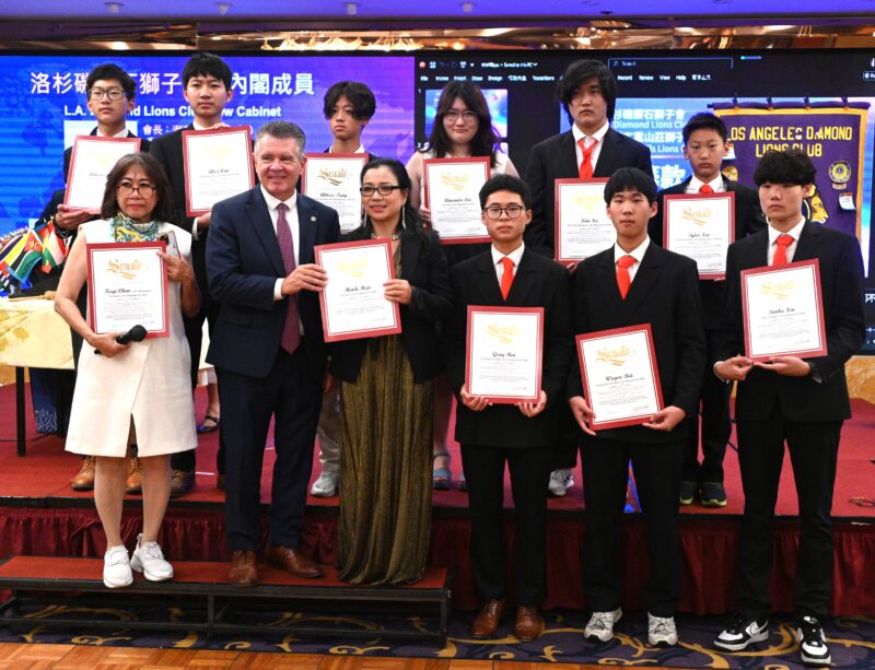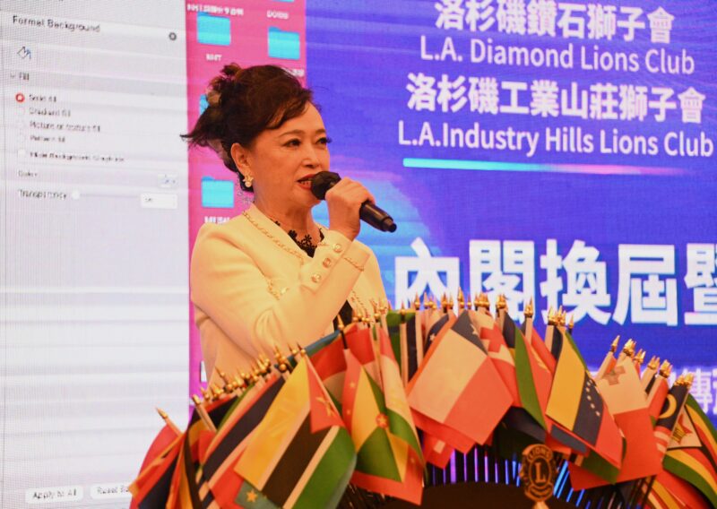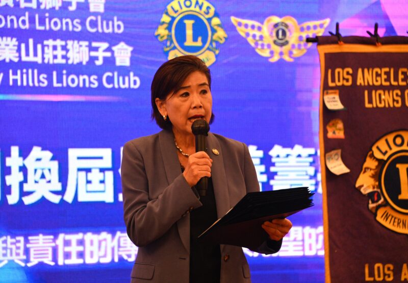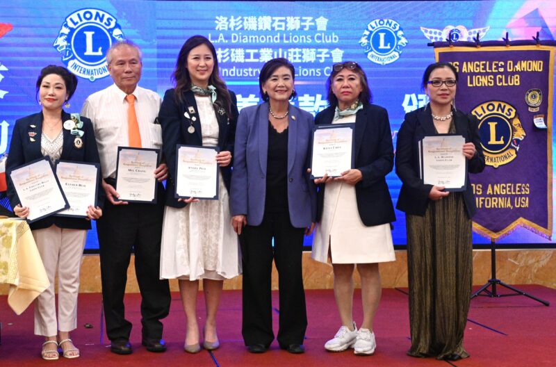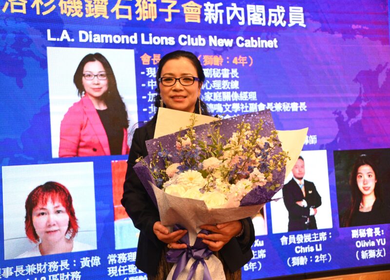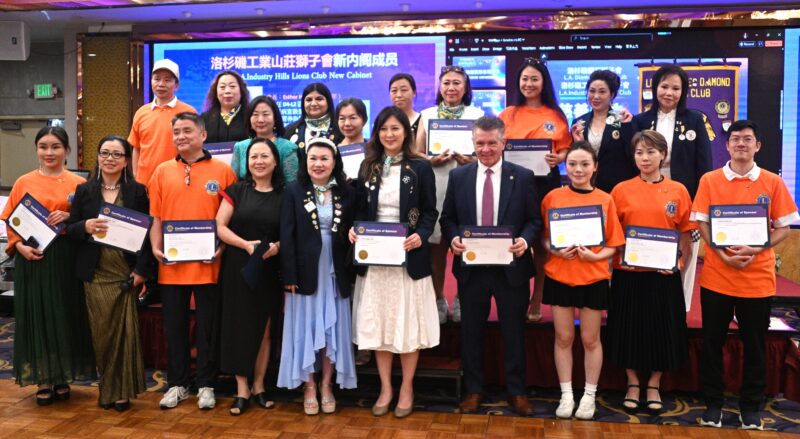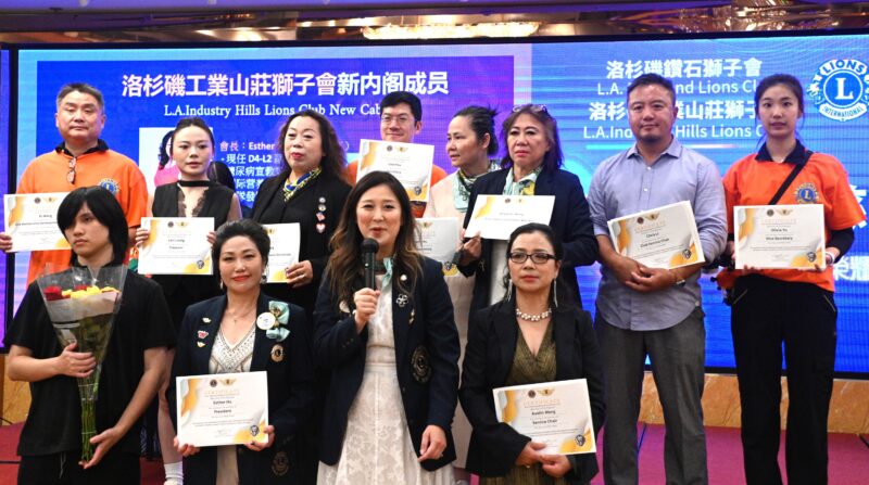 城市新闻9月20日柔似蜜市报导,洛杉矶钻石狮子会与工业山庄狮子会在888海珍大酒家隆重举办换届暨慈善筹款午会。美国国会议员赵美心(Judy Chu)、加州参议员Bob Archuleta代表Kyle Miller与来自政界、兄弟狮会、社团及企业界二百三十多位嘉宾齐聚一堂,见证盛典。钻石狮子会新会长海潮(Hidy Huo)、工业山庄新会长胡娜(Esther Hu)宣誓上任。林慧懿(Theresa LIN)与D4-L2前总监顾思佳(Scarlett Ku)主持盛典。