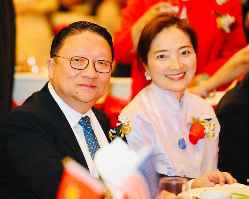 中华人民共和国驻洛杉矶总领事馆总领事郭少春偕夫人王薇、著名侨领张素久(中)