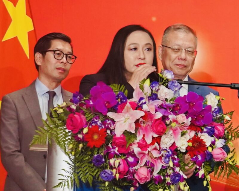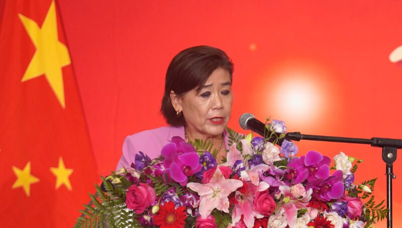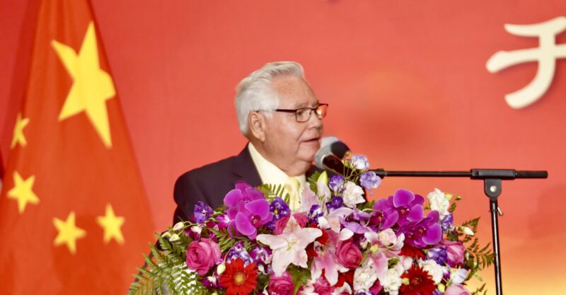 蔡成华主席表示,七十六年前中华人民共和国成立庄严宣告,让一个古老而伟大的民族摆脱了半封建半殖民地的统治,从此昂首屹立于世界东方。七十六年来,中国走过了一条波澜壮阔的奋斗之路,从积贫积弱走向繁荣富强,从封闭落后走向自信开放。无论是经济腾飞的壮丽画卷,还是科技创新的辉煌篇章,无论是脱贫攻坚的伟大奇迹,还是文化璀璨的大国风范,都见证了中华民族自强不息的伟大精神与不懈追求,中国人民正在用坚韧不拔的气魄书写气吞山河的史诗篇章。