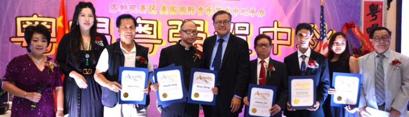 加州州众议员方树强(Mike Fong)向梅宁、黄学文、冯炎成、王温蒂等颁发贺状