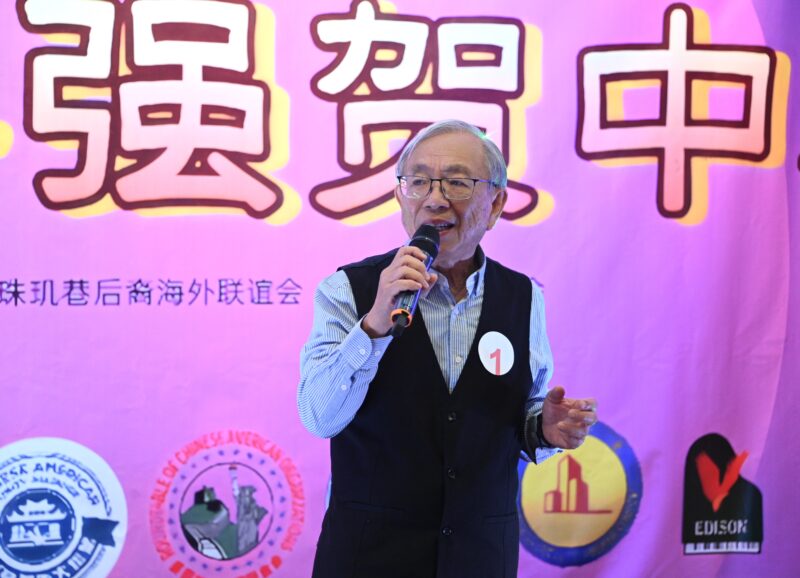 美国国会议员赵美心(Judy Chu)致詞、会场指挥王温蒂(左)