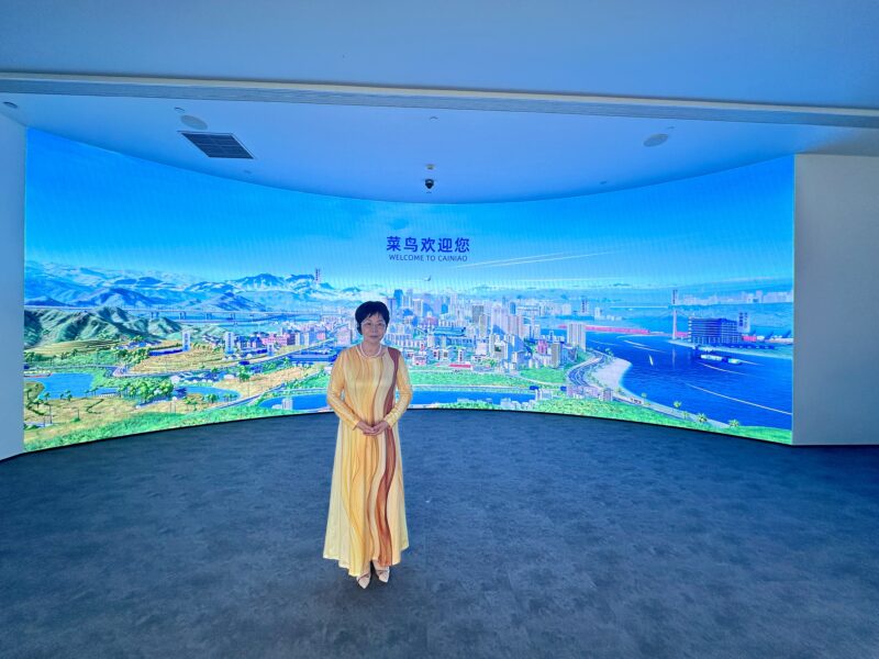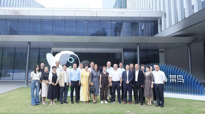 在杭州未来科技城城市展馆,参访团进门就看到屏幕上显示着 “我负责阳光雨露、你负责茁壮成长”,浙江省秉持着这一理念不断地优化营商环境。余杭区作为“全省经济第一区”,在科技创新、高端人才引进、产业集聚和企业国际化布局等方面的成功经验,值得推广和借鉴。参访团还走进菜鸟集团,考察了菜鸟的全球智慧物流网络,现场观摩了自动化仓库和机器人分拣系统的运作,对菜鸟的全球化、智能化、绿色化和创新化,大家深为感叹。“秉持菜鸟之心 超越鸿鹄之志”是菜鸟的座右铭,体现了菜鸟的企业文化,还印在公司瓶装水的包装上。
