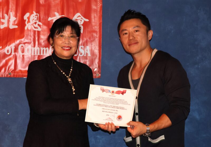江风年会长为赵洪民颁发美国大西北总商会荣誉主席证书